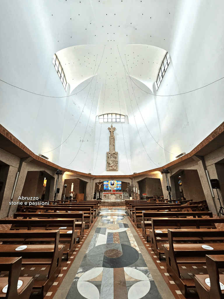 La chiesa parrocchiale di Santa Maria Maggiore, San Franco, ricostruita nel 1948 su progetto dell’architetto romano Ludovico Quaroni – Foto Leo De Rocco per Abruzzo storie e passioni