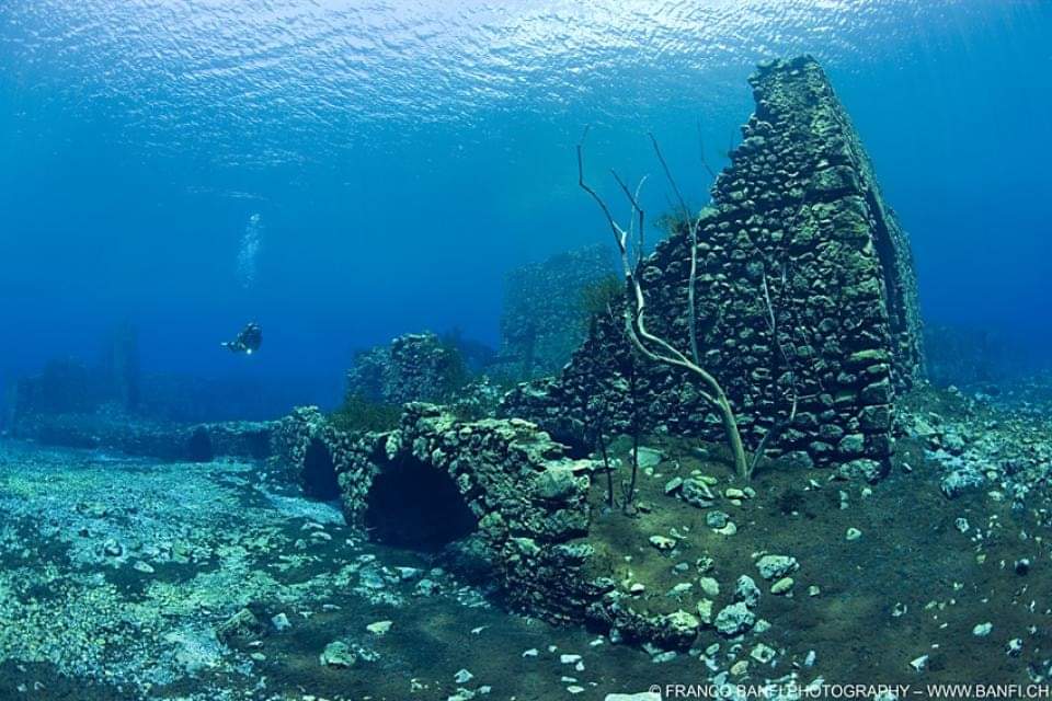 Capestrano – Antichi mulini sommersi nel Lago di Capodacqua, foto Roberto Furlone, e i mulini medievali sommersi, foto Franco Banfi – per gentile concessione ad Abruzzo storie e passioni