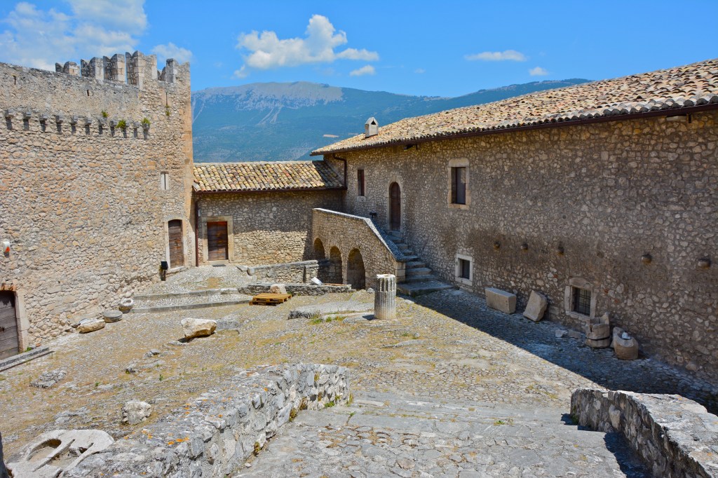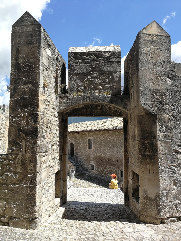 Riprendo il viaggio in direzione del centro del centro storico di Capestrano. In un’atmosfera vagamente fiabesca, non poteva mancare il castello, con tanto di torri merlate e mura possenti.