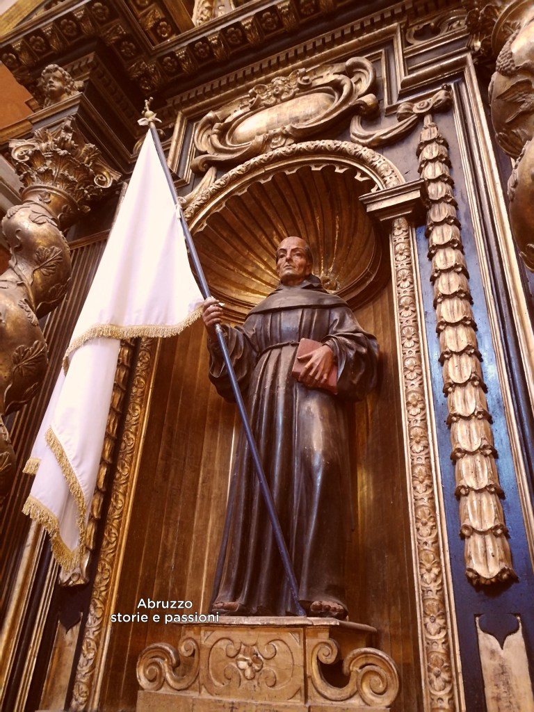 ▪︎ Una affresco dalla iconografia inusuale: il Santo di Capestrano nel Duomo di Atri e raffigurato da Andrea de Litio senza saio, ma con l’uniforme da soldato, spada, scudo e vessillo.