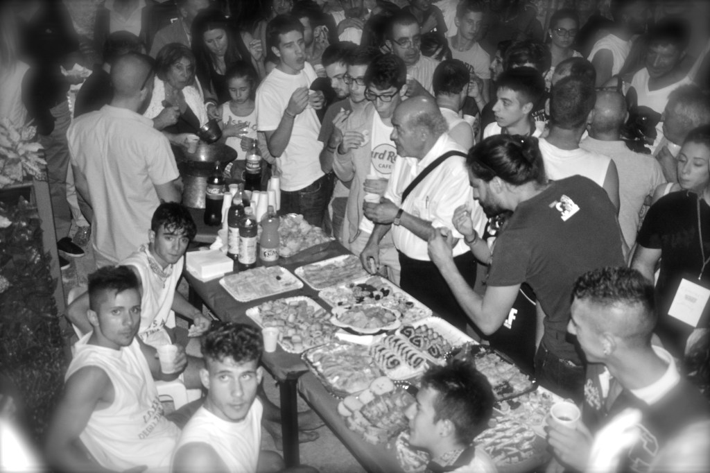 The difficulty of this dangerous and demanding “race” is evident from the earliest stages. Indeed, the young people need to reach the starting point by climbing up barefoot the steep ascent of the mountain, thus getting already the first injuries because of the sharp stones of the path. Whilst the solemn procession dedicated to the Madonna of Loreto is about to end, the villagers and tourists crowd along the path of “race.”