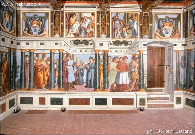 Thanks to this powerful position, Giovanni Branconio was able to get in touch with the artistic circles of the sixteenth-century Rome and to become the friend of Raffaello Sanzio. The artist of Urbino planned for his friend from Abruzzo one of the most interesting buildings in the sixteenth-century Rome: the Branconio dell’Aquila building, where Raphael himself stayed as a guest during his stay in Rome. The building was demolished in 1660 to allow the construction of the St. Peter’s colonnade. The strong bond of friendship between the two is also sealed by the beautiful self-portrait, which is nowadays in the Louvre Museum and depicts Raphael with his friend of Abruzzo.
