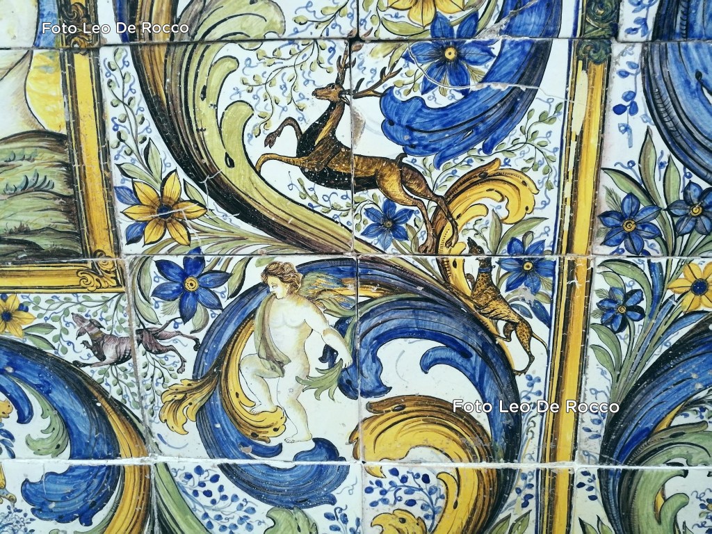 L’Aquila – Oratorio di Sant’Antonio dei Cavalieri de’ Nardis, paliotto maiolicato – in basso: Paliotto di San Lorenzo – Foto Leo De Rocco