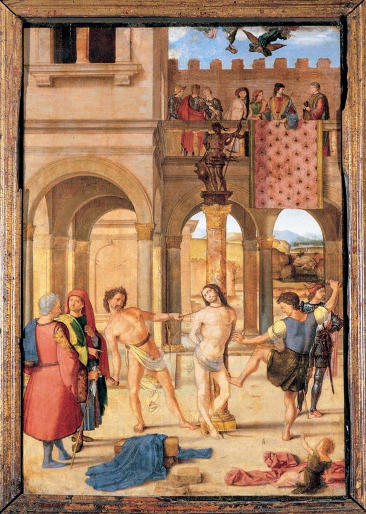 Per il prof. Ferdinando Bologna, le due tele attribuite a Pedro de Aponte – come abbiamo visto nella precedente galleria fotografica oggi custodite nel Museo Capitolare – in origine occupavano lo spazio di questo altare, probabilmente sormontato anche da un affresco nella lunetta, di cui non si ha più traccia. In particolare, scrive Bologna, la tela della Flagellazione di Gesù sarebbe stata scelta dal duca Andrea per ricordare gli anni di prigionia a Napoli e, aggiungo, anche per esprimere la sofferenza derivante dalla perdita dell’amata Isabella.
