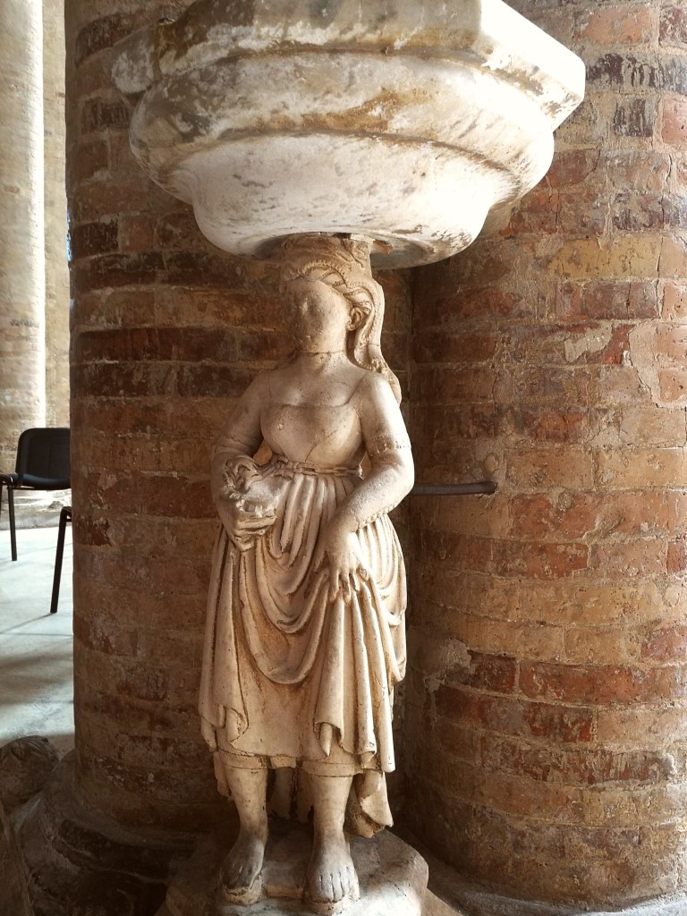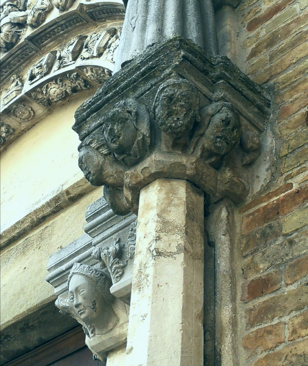 Tra le decorazioni si nota una piccola lumaca. Non è la sola, qui ad Atri l’avevamo già notata sul portale della chiesa di Sant’Agostino che, a mio avviso, riprende la forma stilistica del gotico veneziano del portale della chiesa di San Gregorio a Venezia, anche questa sconsacrata e adibita a luogo per mostre ed eventi.