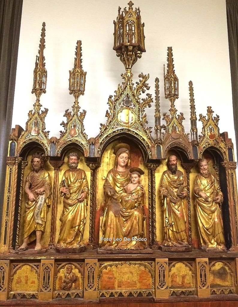 Se il capolavoro di Andrea de Litio attira gli sguardi dei turisti e degli studiosi, il Duomo di Atri – dichiarato monumento nazionale nel 1899 – conserva altri tesori degni di nota. Oltre all’altare ducale, come abbiamo visto ricco di aneddoti, l’altare maggiore è un prezioso gioiello: la datazione lo colloca addirittura al primo periodo di costruzione della chiesa e la raffinata eleganza delle sue forme – scolpite in un unico blocco dal magister Raulino (la sua firma si trova sul fianco destro dell’altare), con inserti in polvere di marmo rosso e verde – ricordano gli stessi motivi stilistici mediorientali dell’altare dell’abbazia di San Clemente al Vomano (articolo: “Abbazia di San Clemente a Casauria e Abbazia di San Clemente al Vomano “).