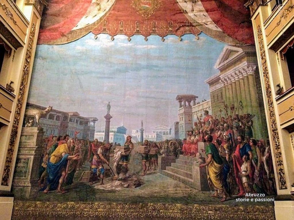 Restando in Abruzzo, anche il teatro di Chieti è dedicato a un popolo italico, i Marrucini, e sul sipario teatino campeggiano le gesta del proconsole romano originario di Chieti, Gaio Asinio Pollione, colui che nel 39 a.C. inaugurò la prima biblioteca pubblica a Roma. Su questo argomento rimando all’articolo “Chieti, l’antica Teate”.