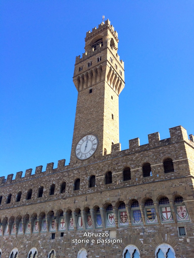 Atri, Palazzo Ducale – A destra: Firenze, Palazzo Ducale (o Palazzo Vecchio), costruito sui resti di un antico teatro romano da Arnolfo di Cambio nel 1299, la torre fu costruita nel 1310 – Foto Leo De Rocco per Abruzzo storie e passioni