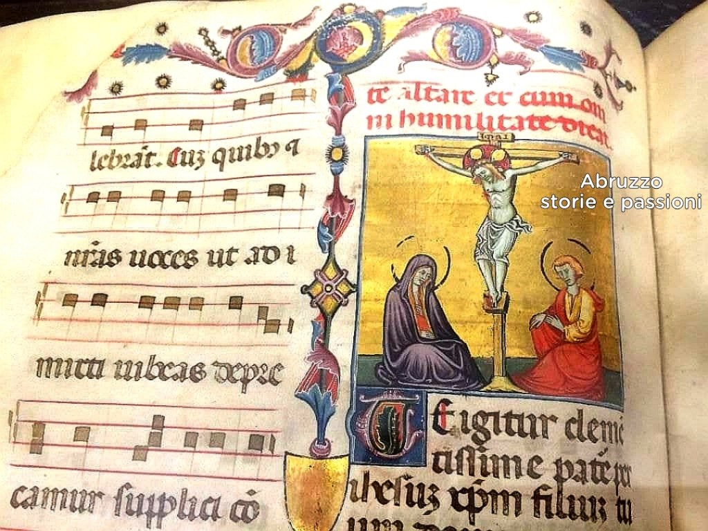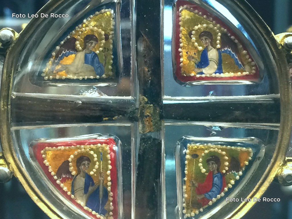Museo Capitolare di Atri – Polittico, sec. XV, legno scolpito, intagliato, policromato, dorato – Madonna con Bambino, maiolica invetriata, 1470 – Luca della Robbia (attribuito) – Croce reliquiario in cristallo di rocca e argento dorato, sec. XIII, dettaglio – Dettaglio del Messale miniato dei Duchi d’Acquaviva, XV sec. – Foto Leo De Rocco