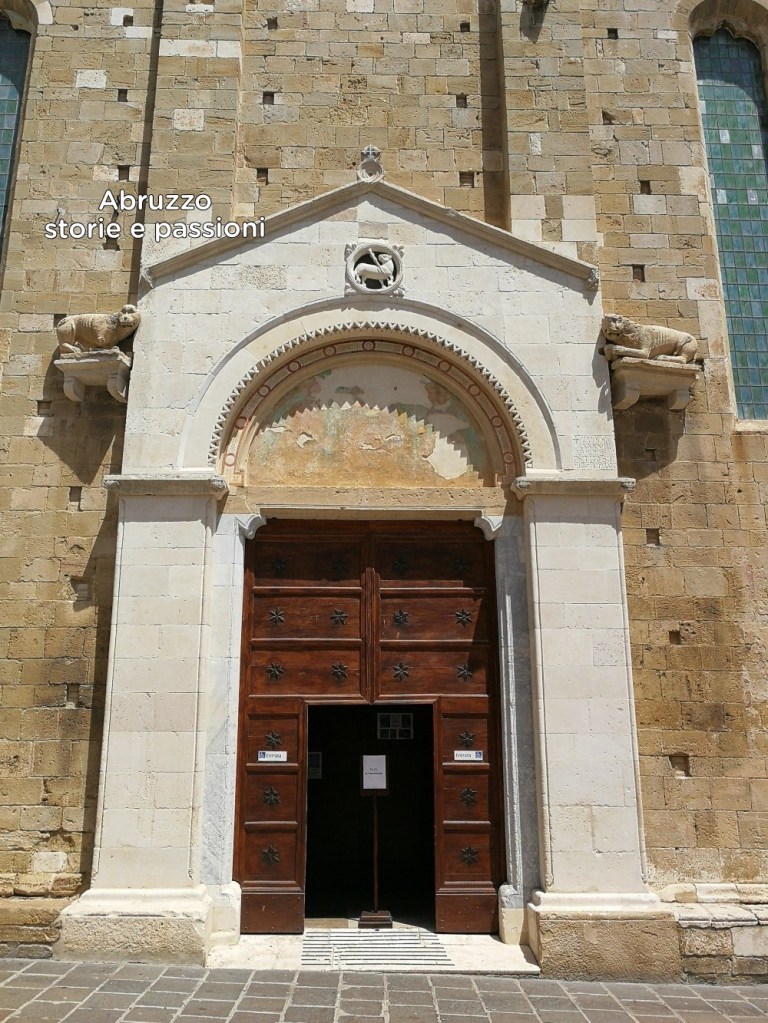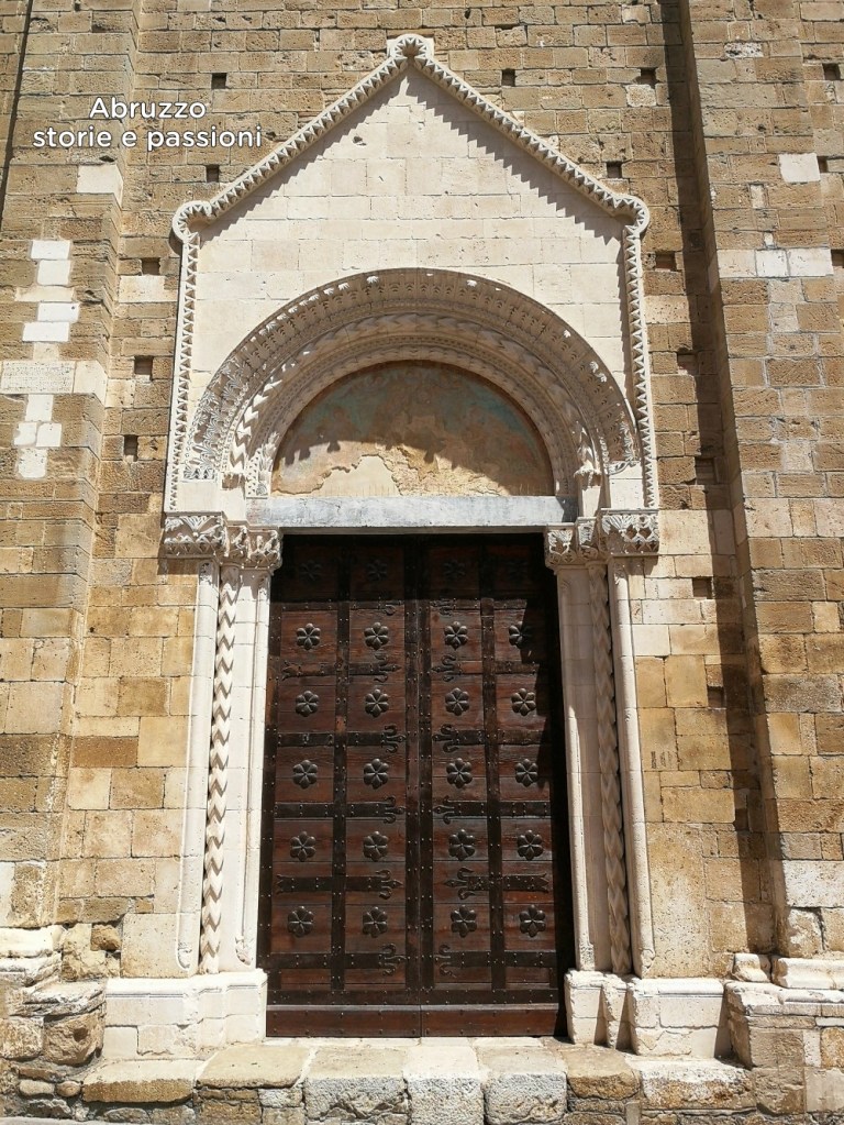 La presenza della Porta Santa ad Atri, documentata nel Quattrocento, è forse legata all’insediamento celestiniano intitolato a San Pietro Confessore, attestato nel 1320. Sopra il portale si conserva un affresco con l’Incoronazione di Maria, realizzato tra il 1200 e il 1300 dal “Maestro delle lunette di Atri” (definizione introdotta dallo storico dell’arte Ferdinando Bologna), autore nel 1305, quando terminarono i lavori dei tre portali, degli affreschi a tema mariano delle lunette.