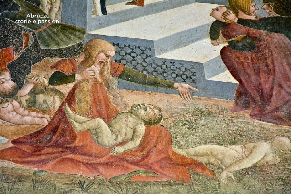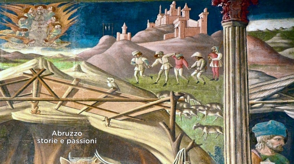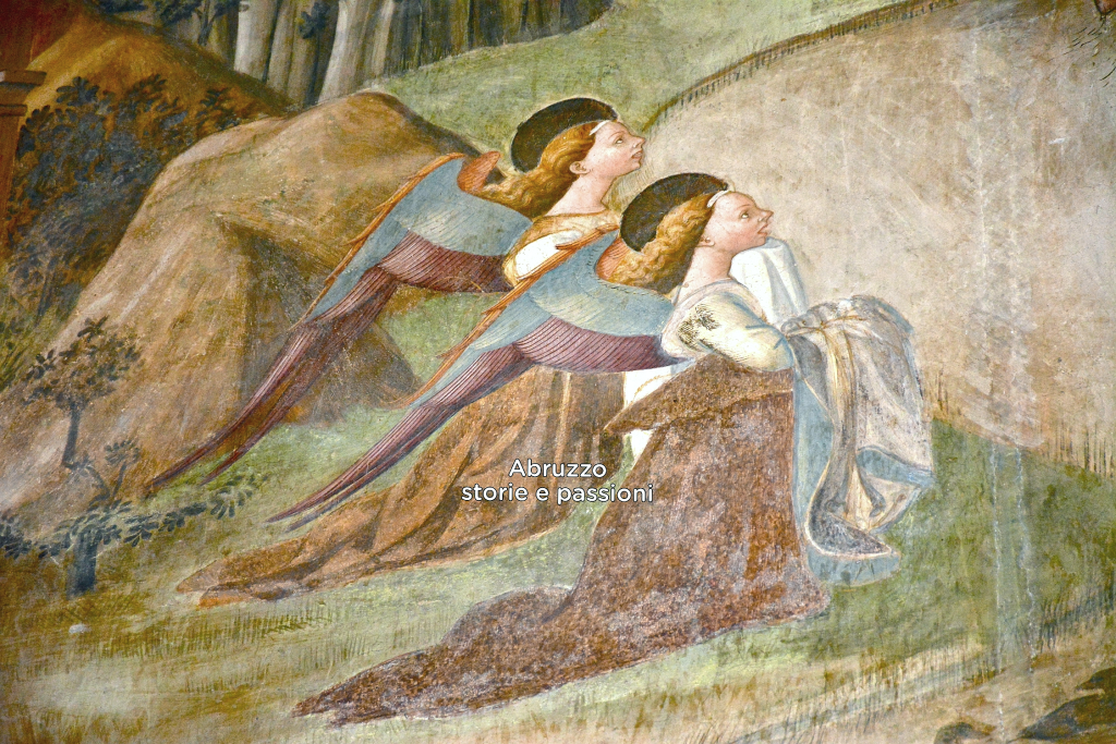 Nella scena della Natività, in cui appare una curiosa civetta appollaiata sulla capanna, un gruppo di giovani che suonano e danzano nella notte rievoca la festa atriana della Notte dei Faugni, celebrata ancora oggi l’8 dicembre e raccontata in questo blog in un articolo dedicato. In un’altra scena si intravedono le colline argillose dei calanchi di Atri dove, un tempo, i frati domenicani raccoglievano le radici della liquirizia. Anche questa storia è narrata in questo blog: “Il mare pietrificato. I Calanchi di Atri e la storia della liquirizia”.