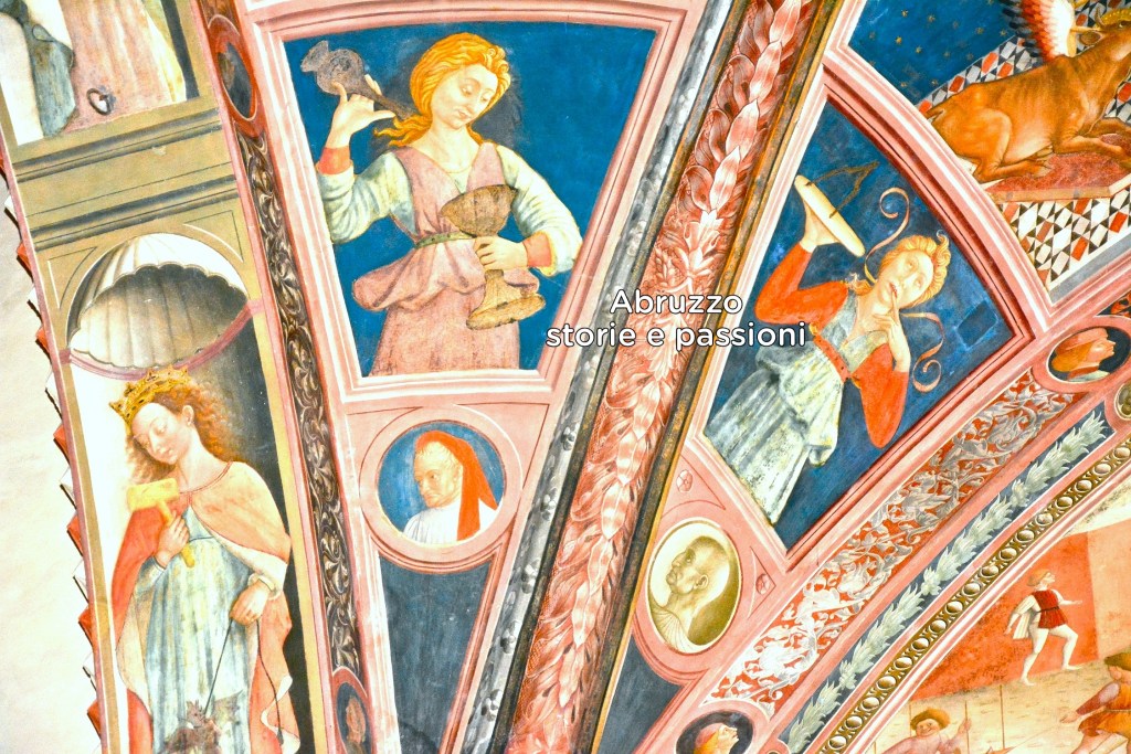 Negli spicchi laterali compaiono le Virtù Cardinali e Teologali, sotto ciascuna, entro medaglioni, sono raffigurati personaggi che potrebbero appartenere alla corte ducale di Atri, scelti da Andrea – o dal committente – per incarnare le Virtù. Sull’arco trionfale, sui sottarchi e sulle semicolonne ottagonali sono infine rappresentati santi e sante, tra cui Santa Reparata, patrona di Atri, con il modellino della città ducale.