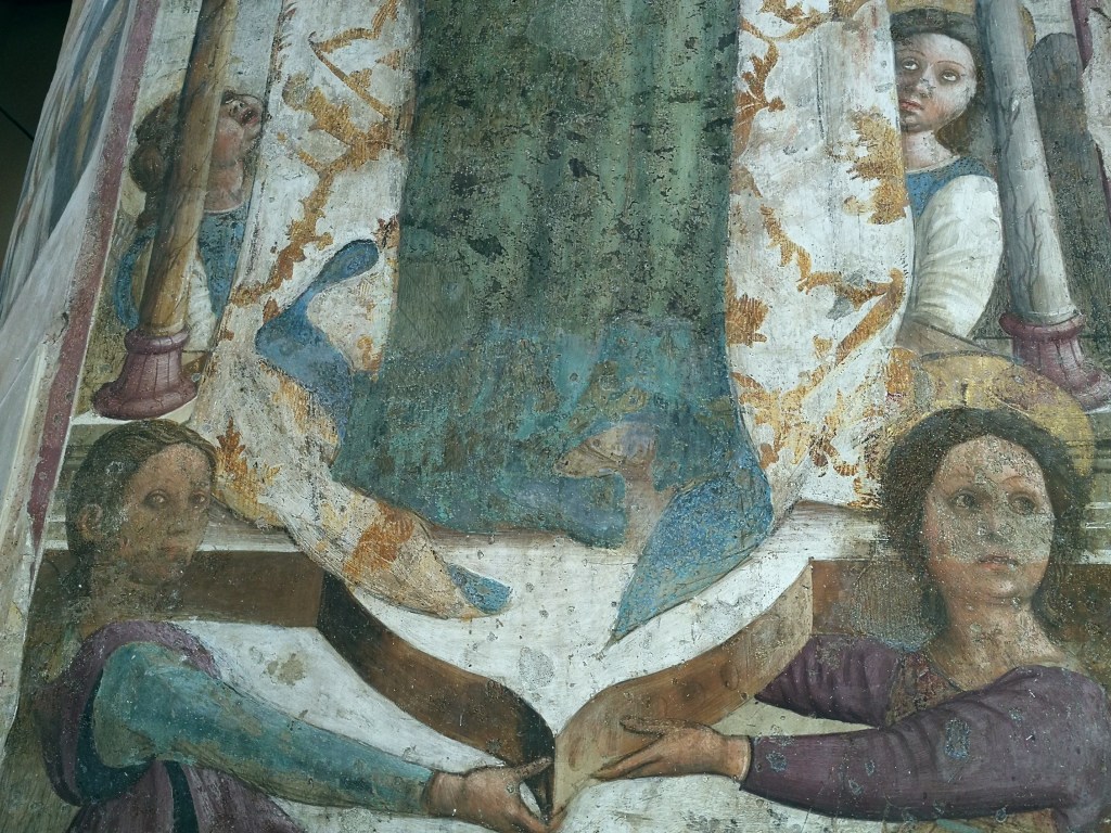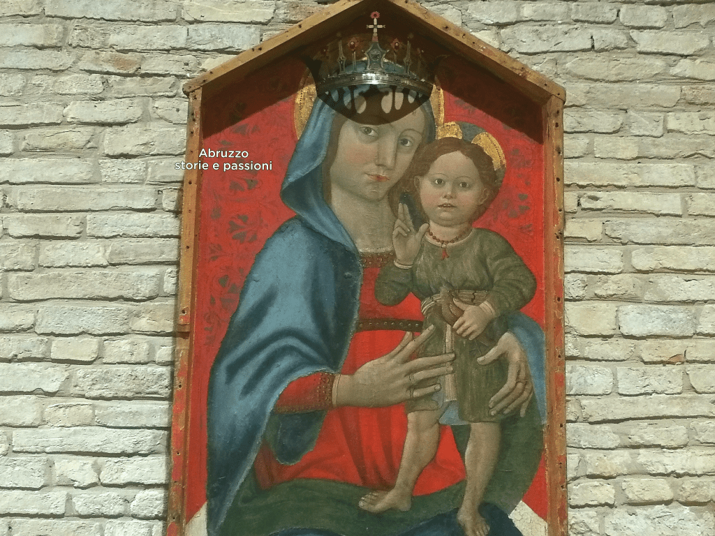Chiesa di Santa Maria in Lago, Moscufo (Pe) – Madonna con Bambino, Andrea de Litio, 1465c. dettaglio – Forse faceva parte di un trittico andato in parte disperso. La tavola ha subìto rimaneggiamenti in passato.