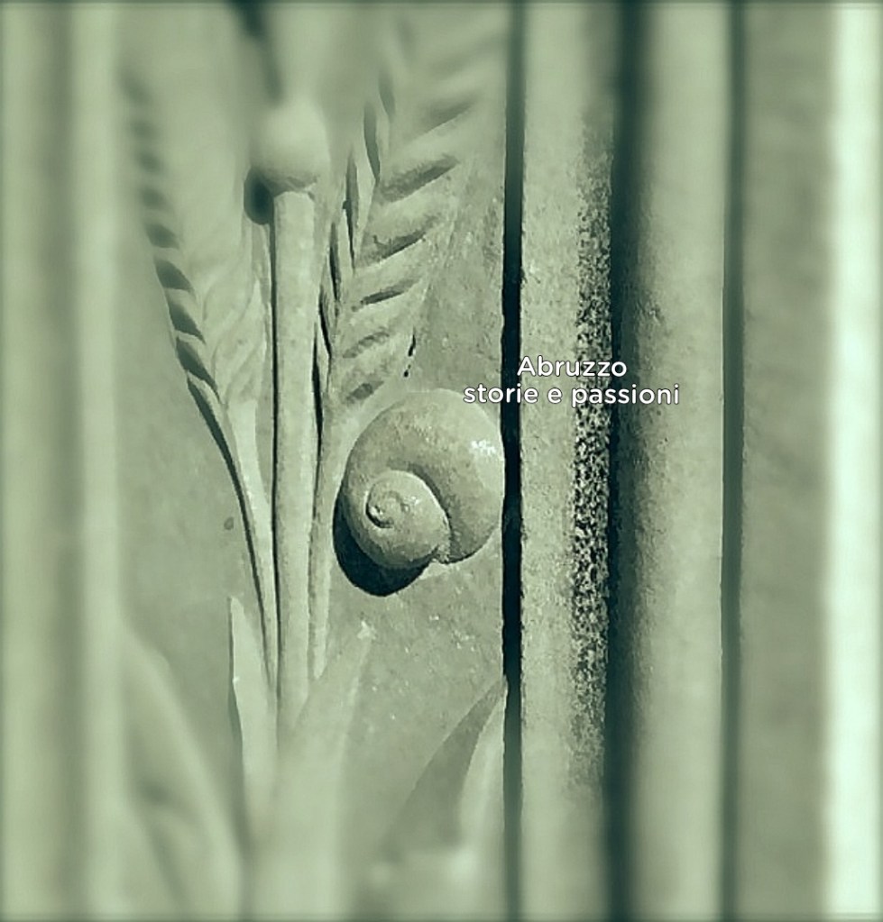 La lumaca simboleggia l’ascesa terrena verso la parola di Dio, che non di rado è lenta, piena di ostacoli e tentazioni. Infatti, sempre in Abruzzo, un’altra lumaca si trova sul cero pasquale di Santa Maria in Arabona, a Manoppello; appare scolpita tra tralci di vite, che simboleggiano lo scorrere dell’esistenza. Su questo argomento rimando all’articolo: “Giulianova, il misterioso portale di Santa Maria a Mare”.