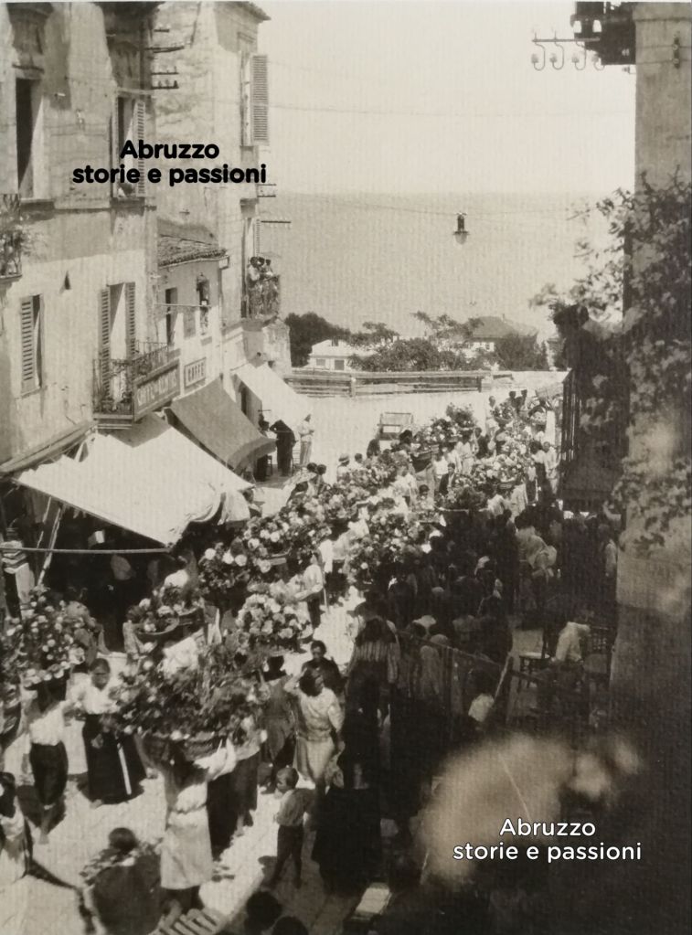 Francavilla al Mare, donne del posto trasportano conche in rame riempite di fiori in carta colorata, durante la festa dedicata a San Rocco, primi anni del ‘900 e anni ”70 (2) – Archivio storico Giuseppe Iacone