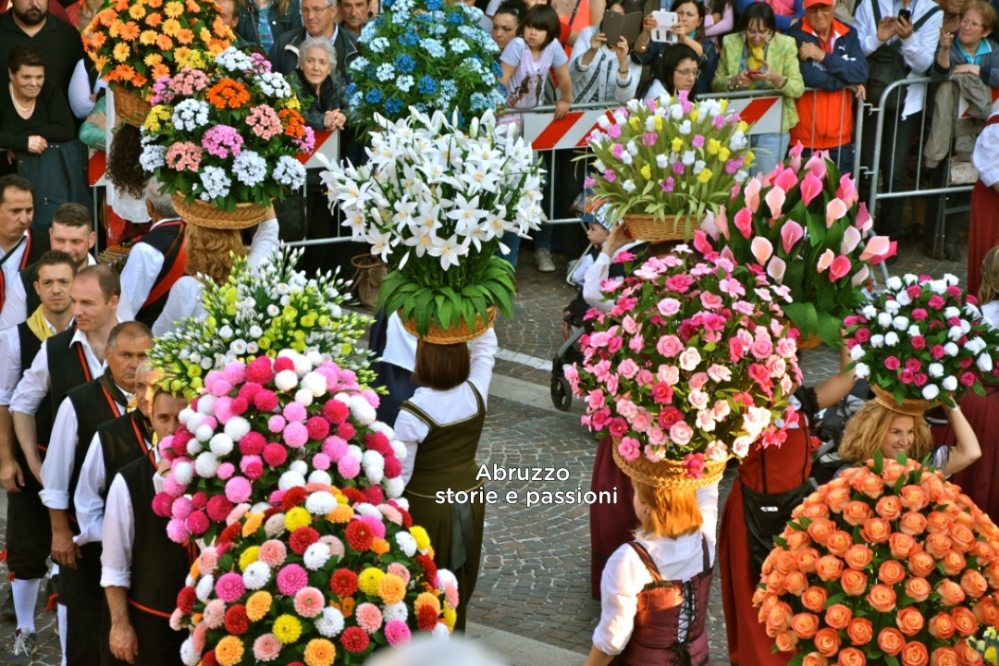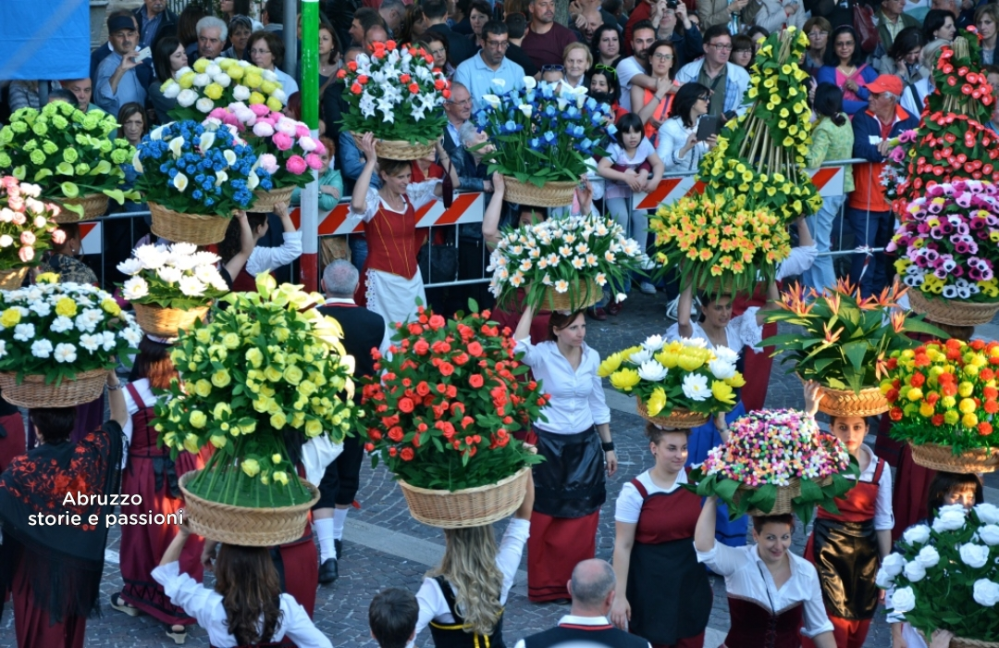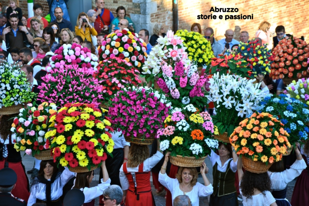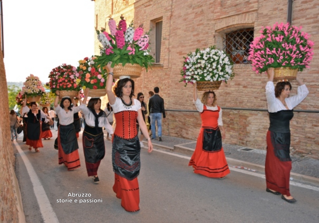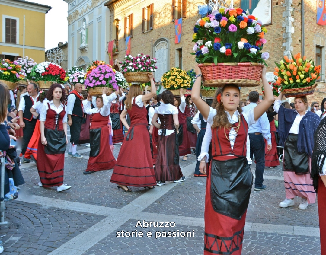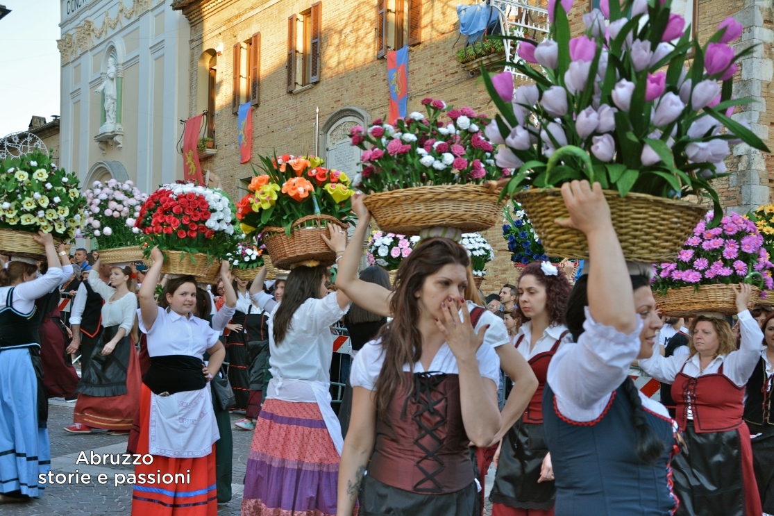 Gridano gioiosi i gruppi di giovani banderesi in costume d’epoca che accompagnano il corteo, tra carri adornati con ghirlande di fiori, damigelle con acconciature medievali e rinascimentali, ragazze popolane che ballano il “saltarello” con i capelli al vento, castellane, balestrieri, sbandieratori, armigeri, musici e dame che con disinvoltura portano sul capo i canestri colmi di fiori colorati. L’entusiasmo e la partecipazione delle nuove generazioni conferma l’attaccamento alle radici e alla storia di questo festoso paese abruzzese.