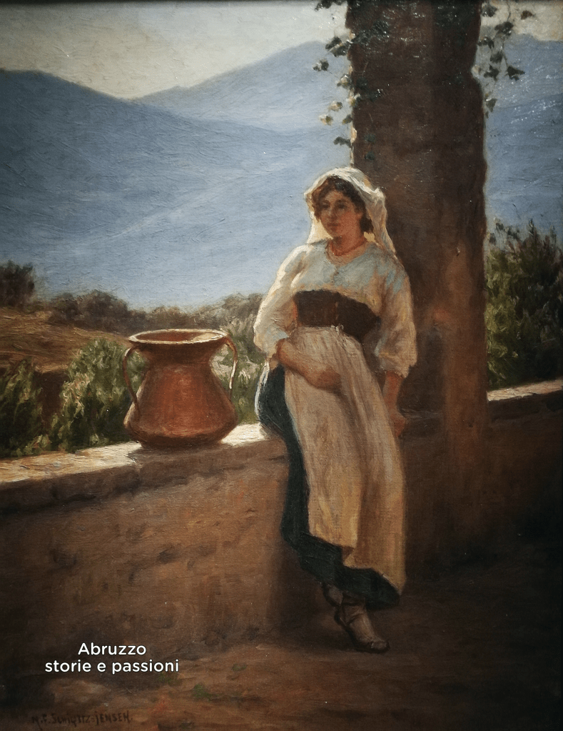 Ragazza con la conca sulla “Scalinata di Porta Flora” a Civita d’Antino, 1890, Peter Tom-Petersen – Imago Museum Pescara – a destra: Ragazza si riposa sotto un pergolato, 1911, Niels Frederik Schiottz-Jensen – Imago Museum Pescara – Foto Leo De Rocco per Abruzzo storie e passioni