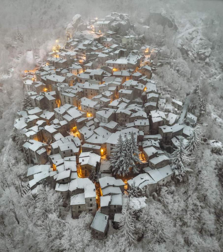 Molti paesi abruzzesi innevati sembrano piccoli presepi, come Pietracamela (Te), in questo suggestivo scatto del fotografo Paolo Silvestri (paolosilvestriphoto Instagram)