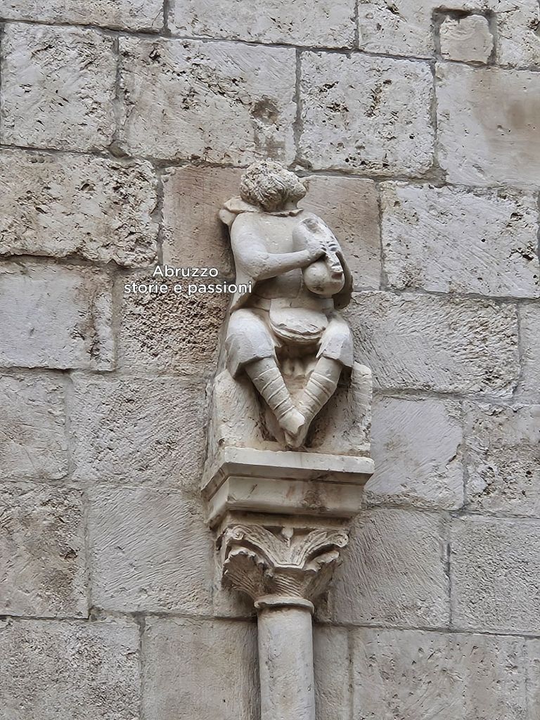 Statua raffigurante un suonatore di zampogna sulla facciata della chiesa di Santa Maria Maggiore a Caramanico (Pe) ‐ Foto Leo De Rocco per Abruzzo storie e passioni