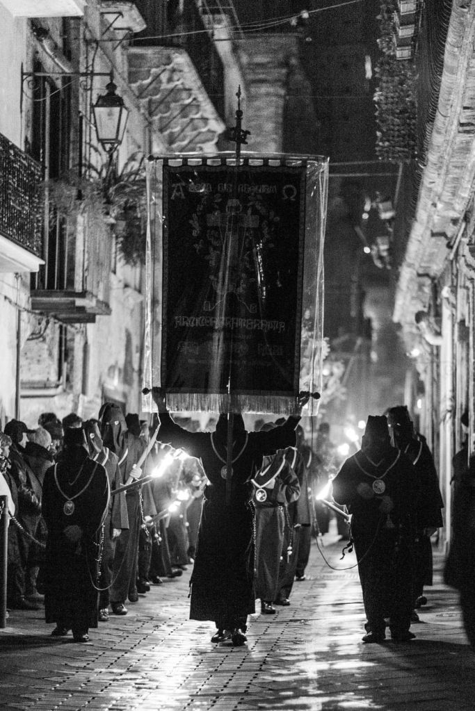 Pochi minuti prima dell’inizio della processione il priore dell’Arciconfraternita Morte e Orazione San Filippo Neri assegna il compito di trasportare la croce a un suo confratello, la cui identità è nota solo al priore e a nessun altro.