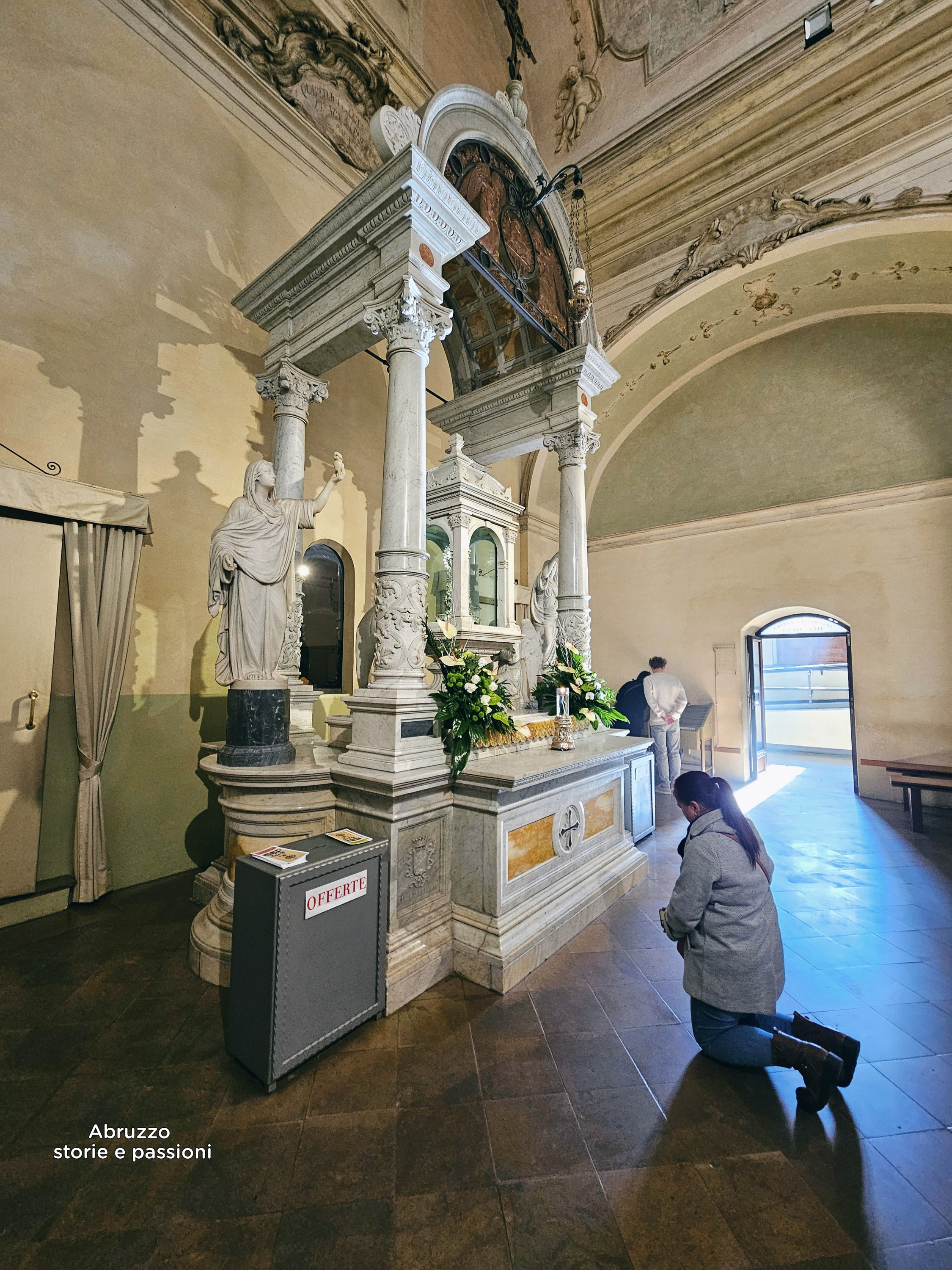 All’interno della cattedrale, sull’altare maggiore, si trova la statua in terracotta policroma della Madonna del Ponte (1440) raffigurata, non a caso, su tre ponti, tutti in oro, un’opera firmata dell’orafo lancianese Carabba. Il prezioso manufatto sostituì un precedente basamento, sempre a forma di tre ponti, ma lavorati in corallo, a conferma della diffusa lavorazione del corallo in Abruzzo. sull’argomento rimando al citato articolo sull’arte orafa abruzzese.