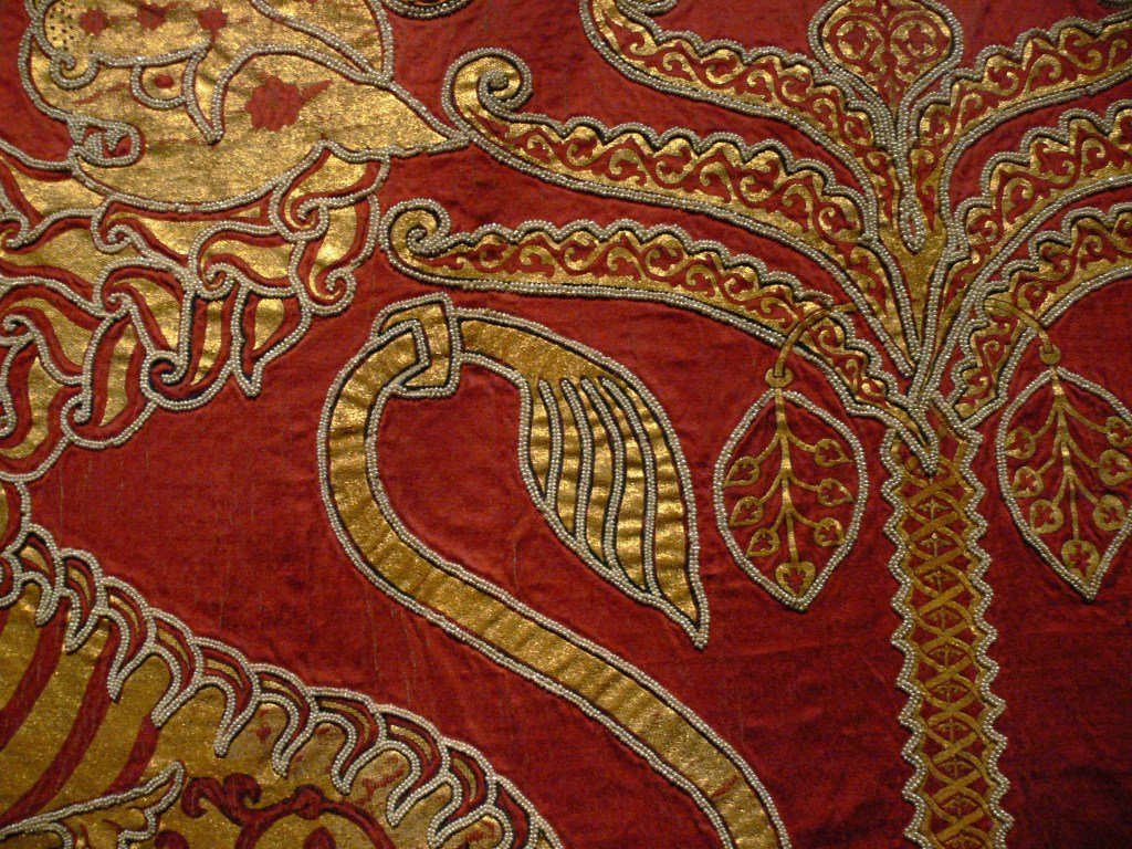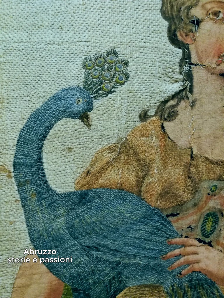 Parato in lino, seta, ricamo e dipinto a tempera – dettaglio – ambito napoletano XVIII sec. – Museo Diocesano Lanciano – foto Abruzzo storie e passioni