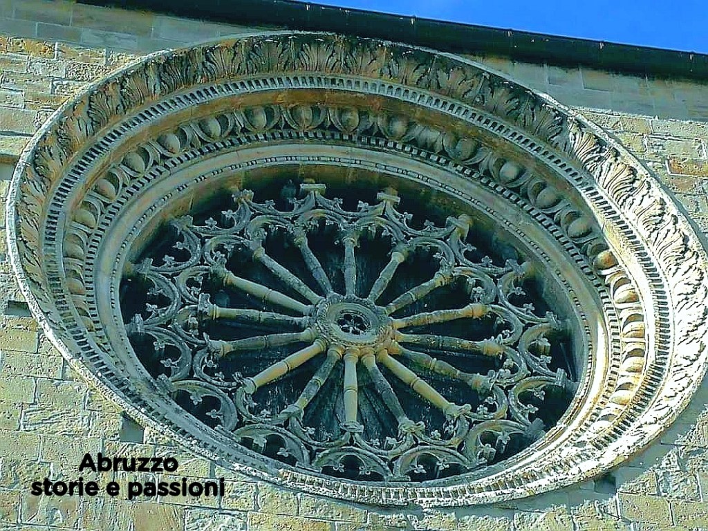 Chiesa di Santa Maria Maggiore – Lanciano – Foto Abruzzo storie e passioni- il rosone è del ‘300; la navata è in stile gotico; la Croce processionale è datata 1422, opera di Nicola da Guardiagrele, è in argento dorato e smalti.
