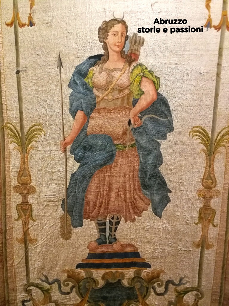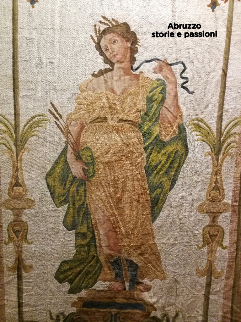 Nel Museo Diocesano scopriamo un altro manufatto tessile, questa volta risalente al Settecento. Si tratta di un grande parato in lino con ricami in seta, dipinto a tempera con raffigurazioni di dee e muse. La manifattura, unica nel suo genere, è di ambito napoletano: faceva parte della collezione dei Reali di Napoli.