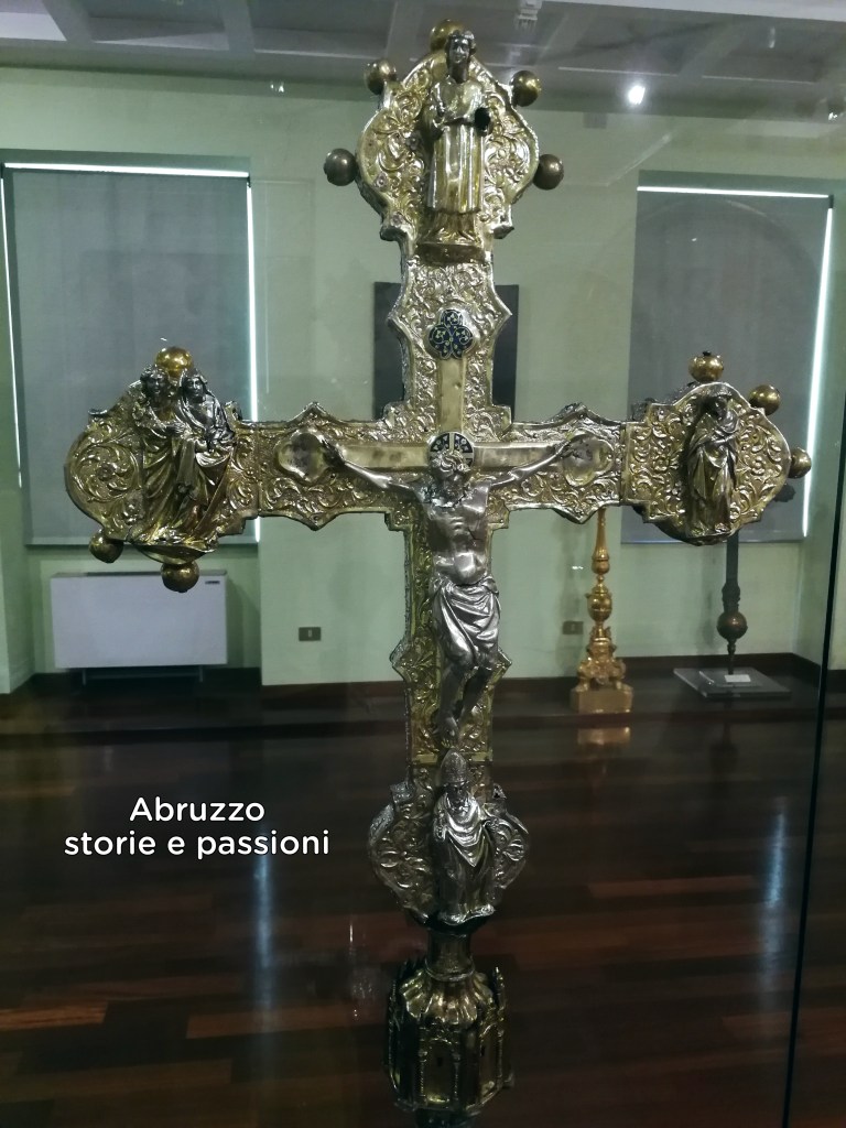 La sala delle oreficerie è impreziosita da un pastorale in argento lavorato, risalente al Trecento, eloquente testimonianza delle antiche botteghe orafe abruzzesi, in particolare quelle della Scuola sulmonese. Al suo fianco brilla un’opera del citato maestro Nicola da Guardiagrele (Guardiagrele 1385 – 1462), una croce in argento smaltato.