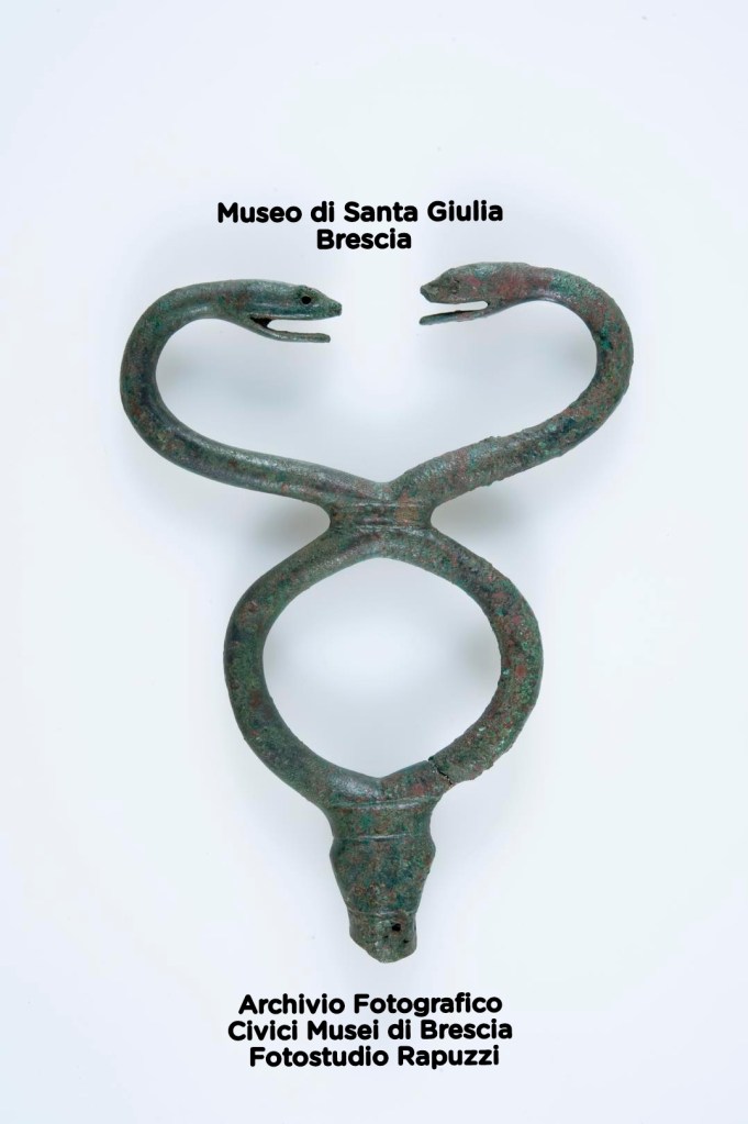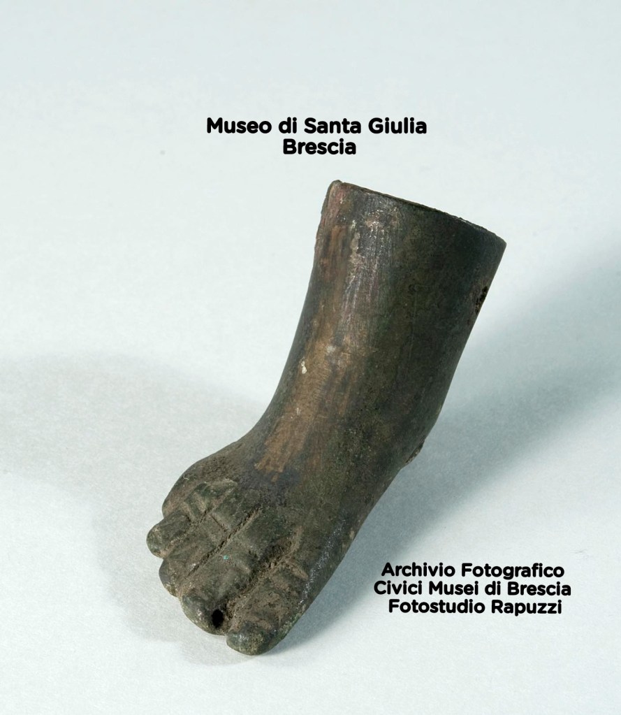 “Caduceo in bronzo, V-III, sec. a. C. ; Freccia di giavellotto subtriangolare; Piede in bronzo V-III sec. a. C. ; Statuetta virile nuda in bronzo, V-III sec. a. C. ; Campanella a piramide in bronzo, V-III sec. a. C.” Le foto che trovate nella galleria fotografica sono state gentilmente concesse in esclusiva per questo articolo dalla direzione dei Musei di Brescia.