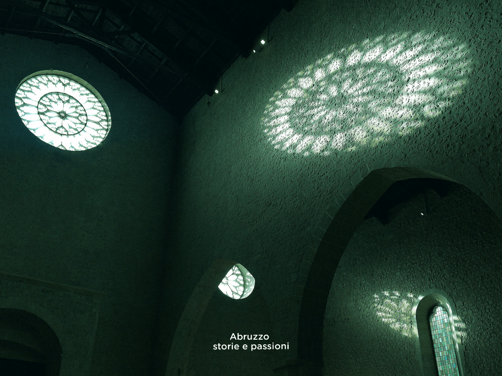 Suggestivi giochi di luci dai rosoni della basilica di Collemaggio a L’Aquila ‐ Foto Leo De Rocco per Abruzzo storie e passioni