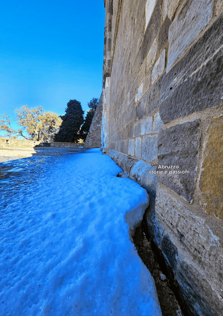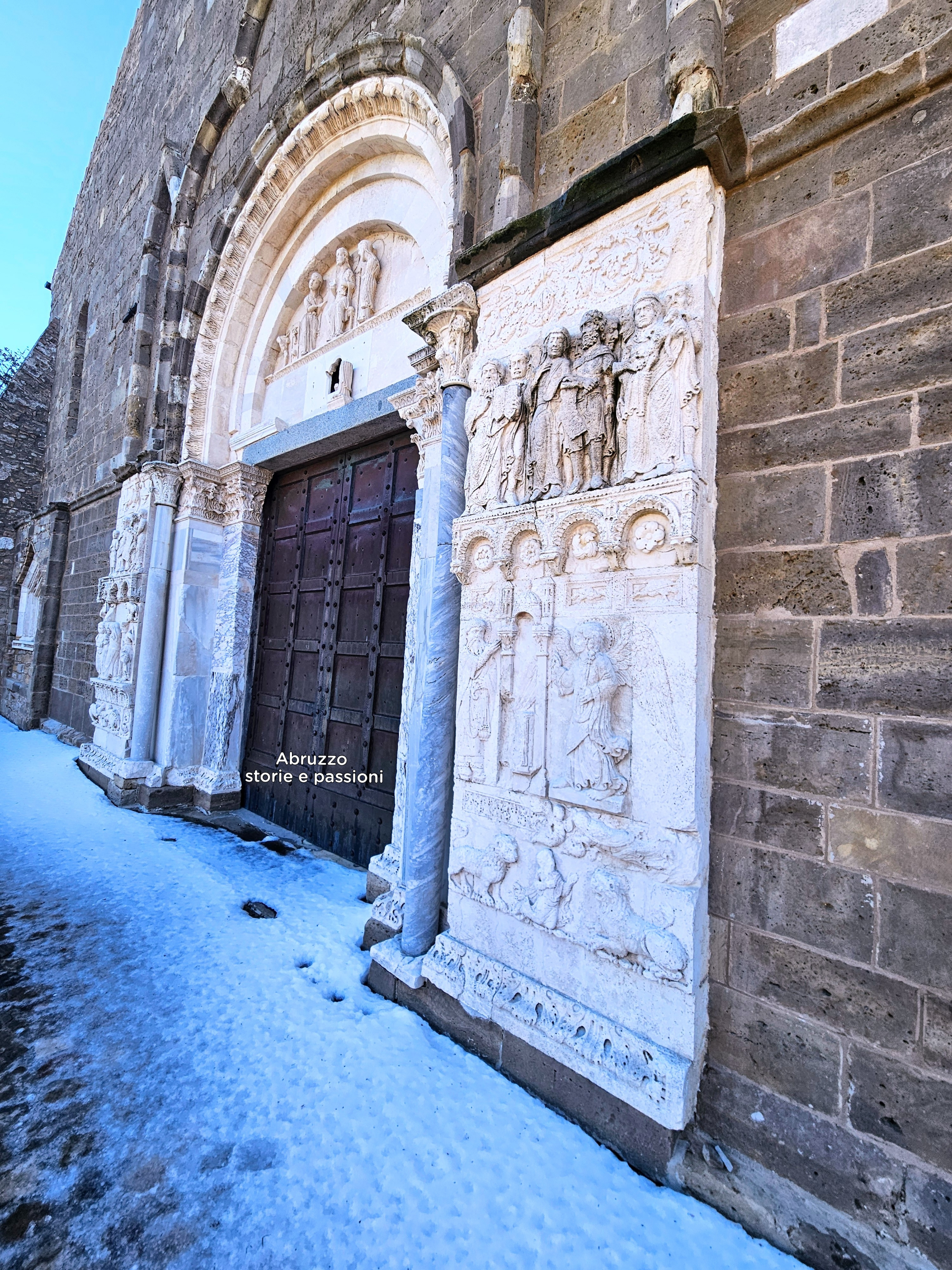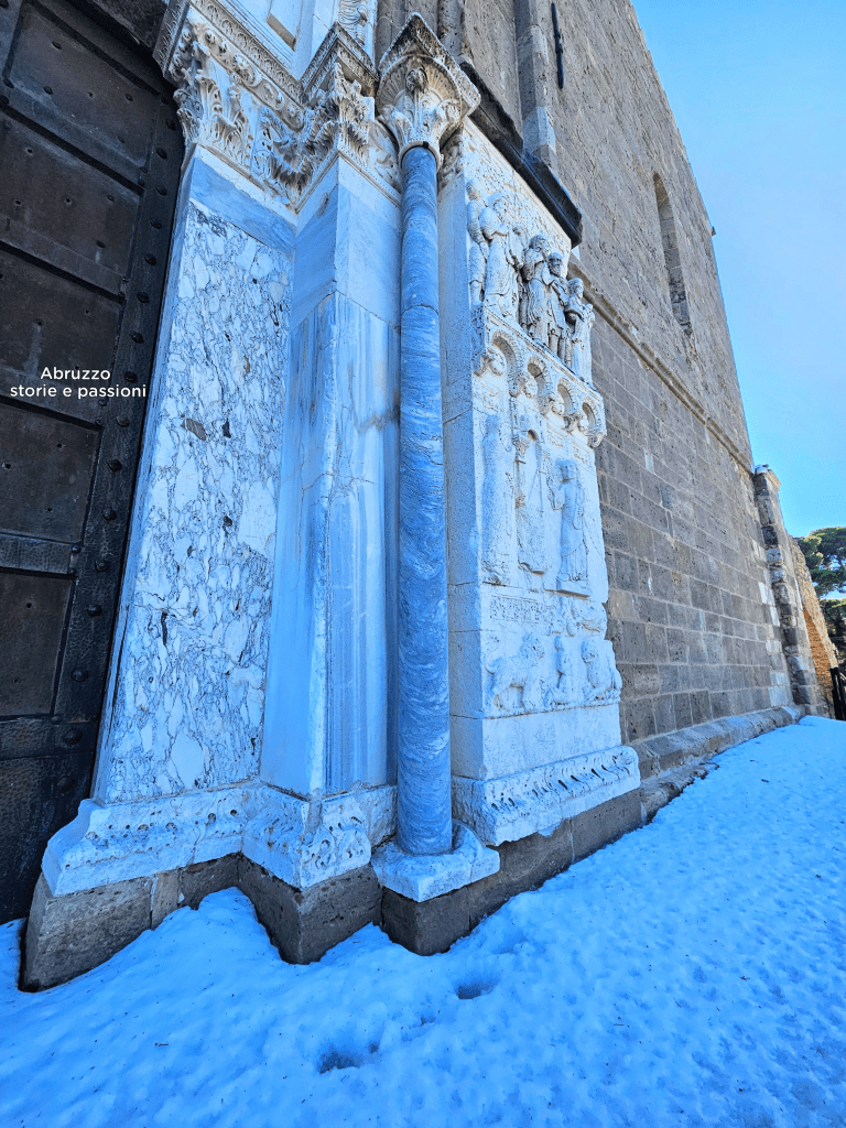Abbazia di San Giovanni in Venere, alcune immagini insolite e suggestive scattate dopo una rara nevicata autunnale, sotto la lunetta del portale maggiore ‐ Foto Leo De Rocco per Abruzzo storie e passioni