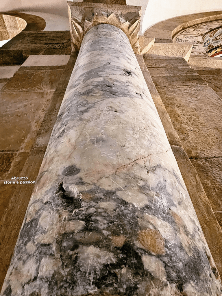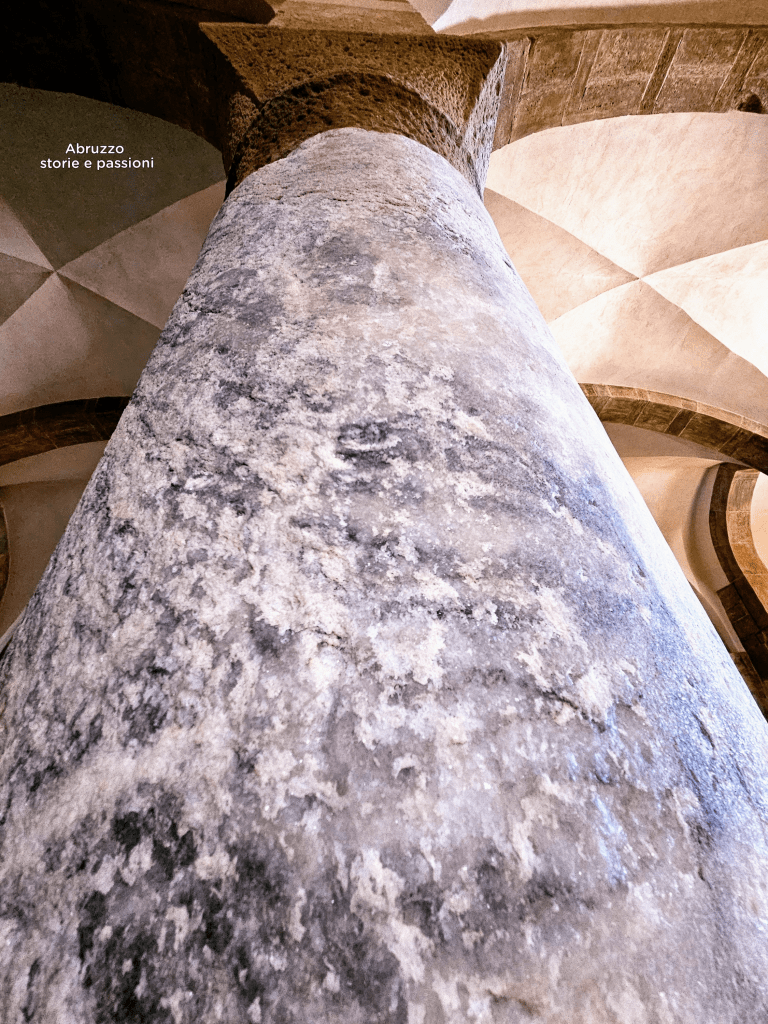 Nella chiesa di San Pietro in Albe, come ricordato nell’articolo dedicato, molte colonne provenienti dal tempio di Apollo furono riutilizzate per costruire la luminosa e slanciata navata centrale. In questo nostro gioco di similitudini tra templi pagani trasformati in chiese e abbazie, anche a San Giovanni in Venere rivolgiamo particolare attenzione alle antiche colonne che scandiscono gli spazi sacri.