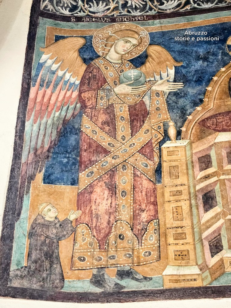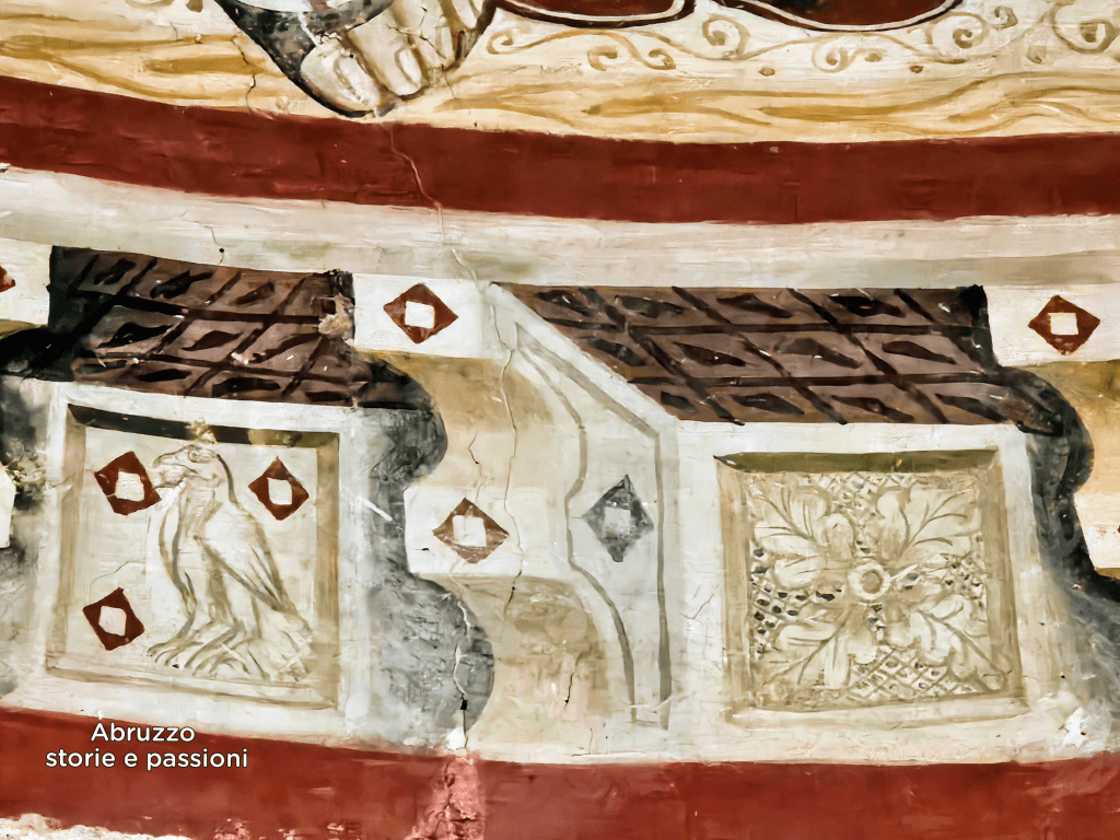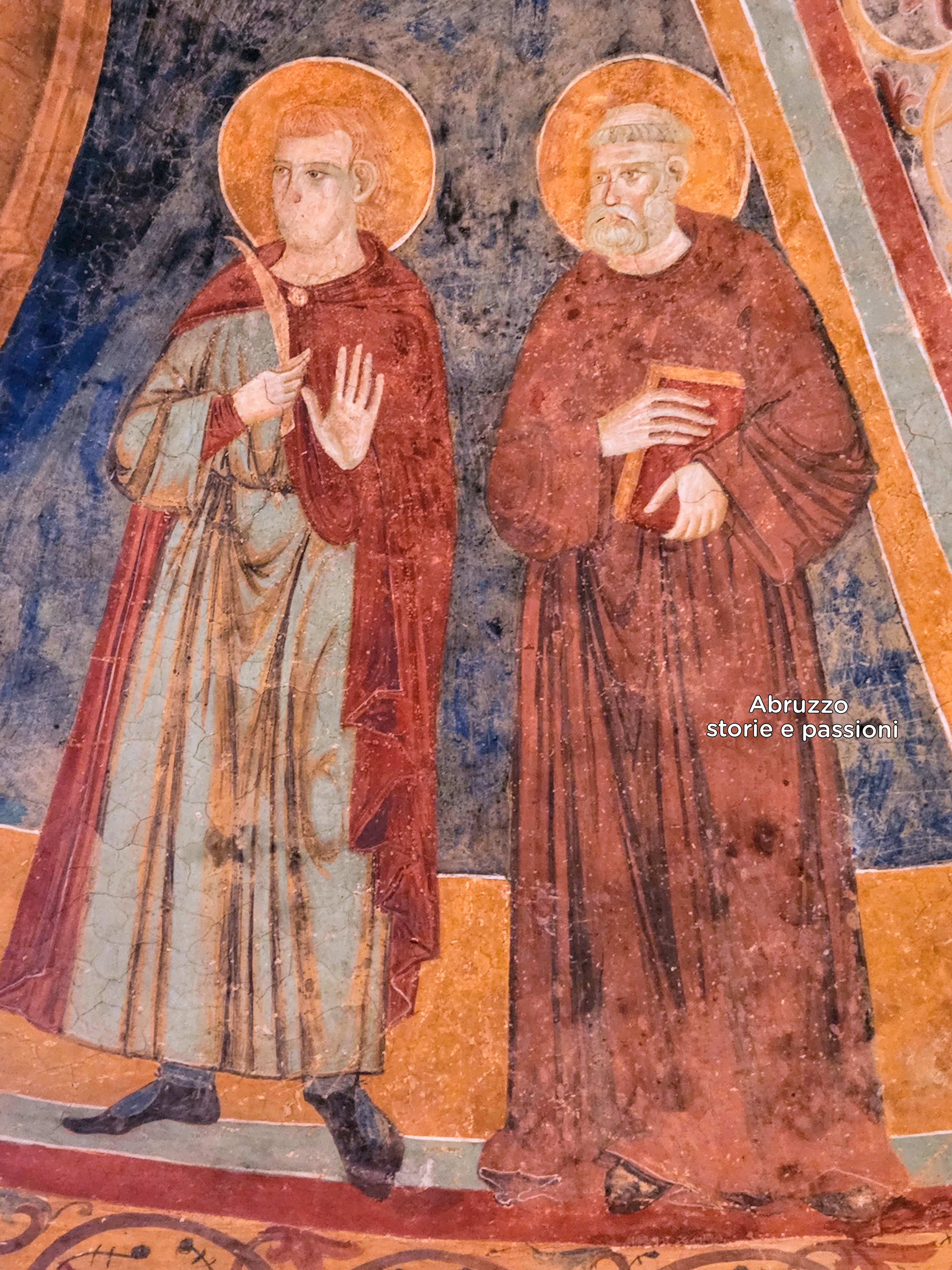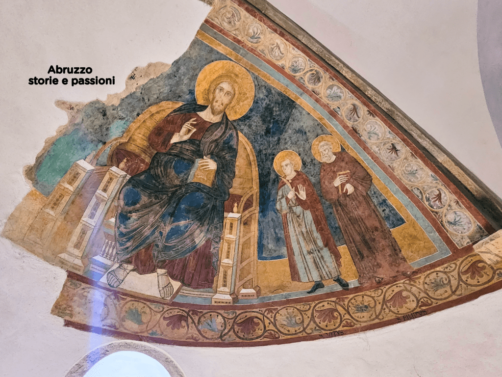 I vivaci colori degli affreschi bizantineggianti illuminano le tre absidi. Datati tra la fine del XIII e l’inizio del XIV secolo, appaiono particolarmente suggestivi nell’abside centrale, dove sembrano più antichi e forse vogliono raccontare, con quelle forme plastiche e quei toni intensi, la persistenza degli influssi bizantini lungo la costa adriatica. Questi elementi, radicati e stratificati, sopravvissero anche alla dominazione longobarda e alla successiva epoca normanna, testimoniando una continuità culturale e artistica che attraversa secoli di storia.