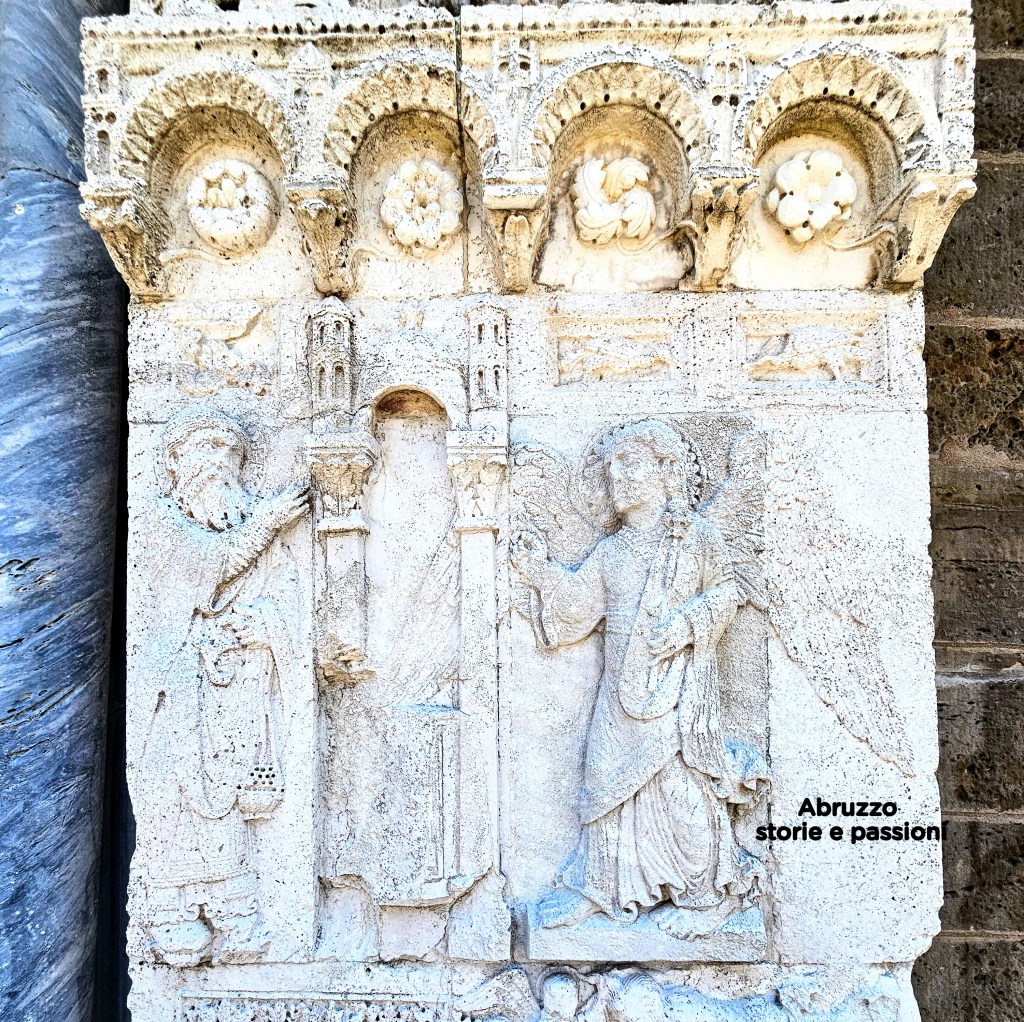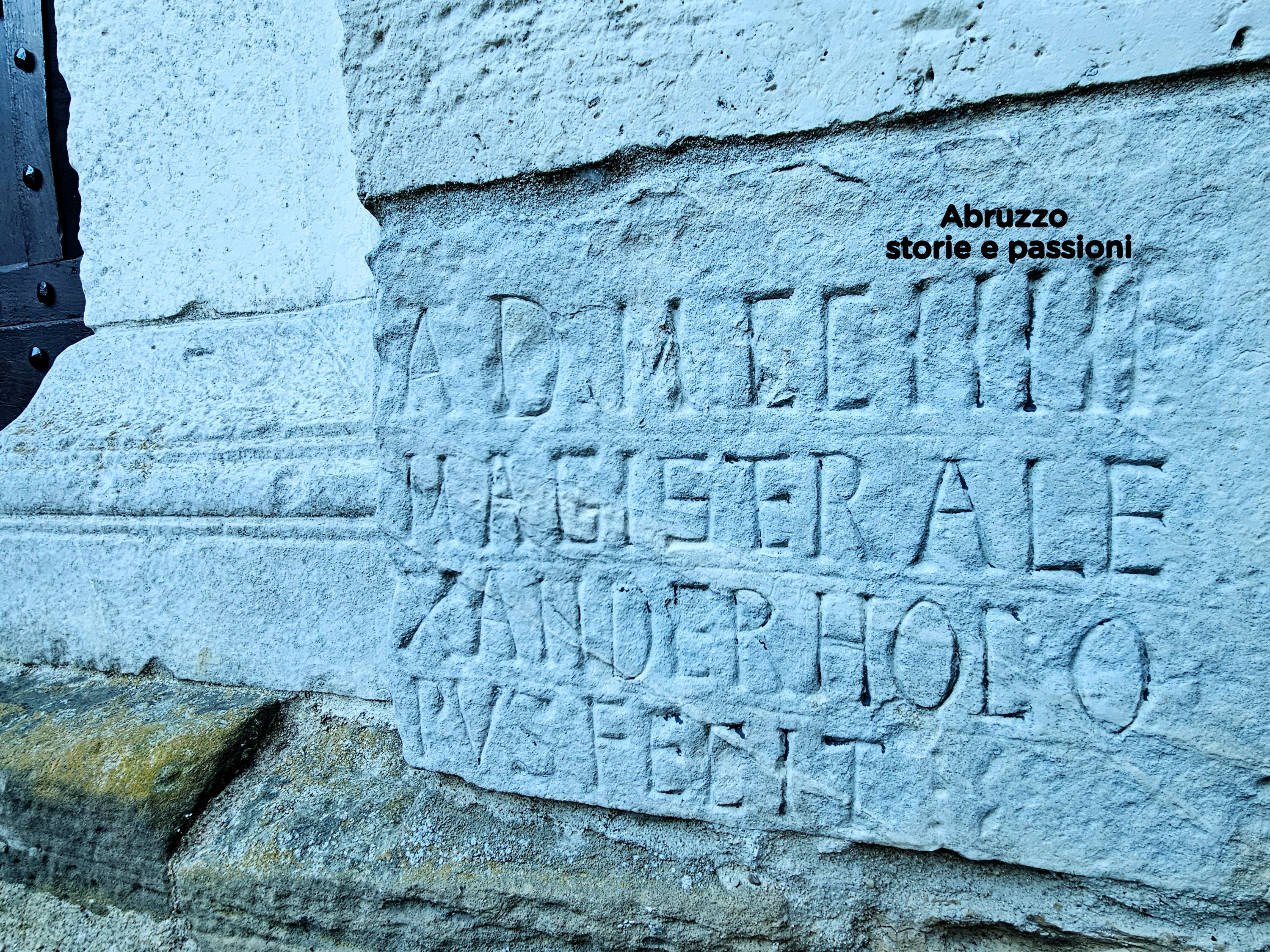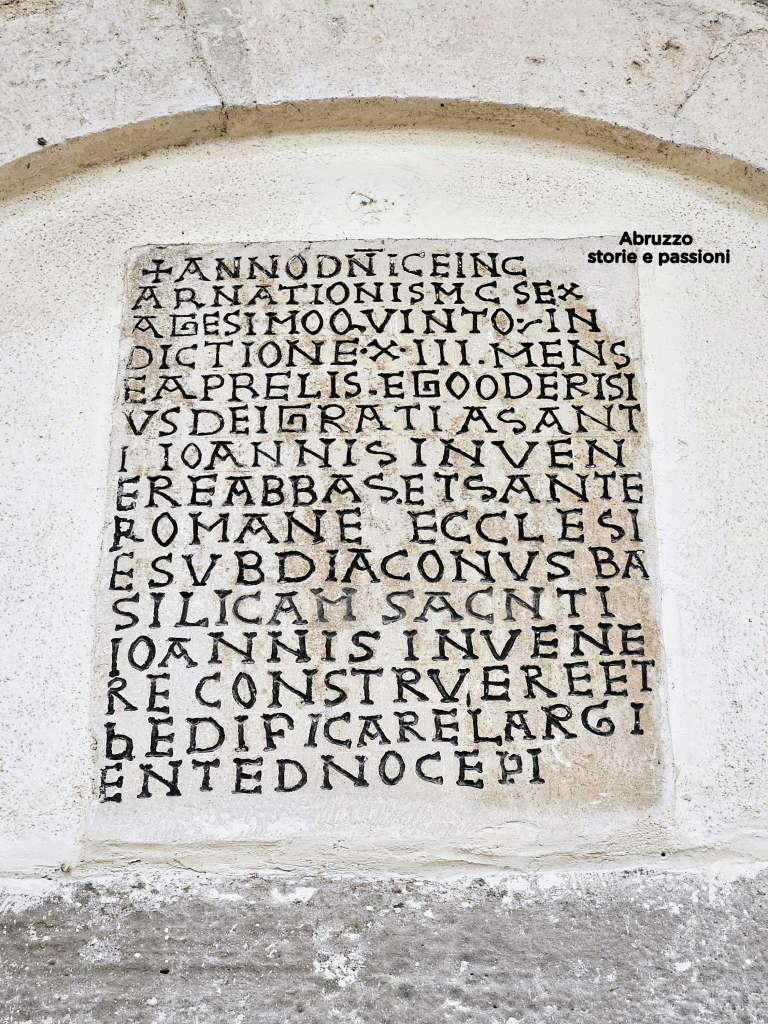 La lapide sul portale interno laterale che indica l’anno 1165 e l’abate Oderisio