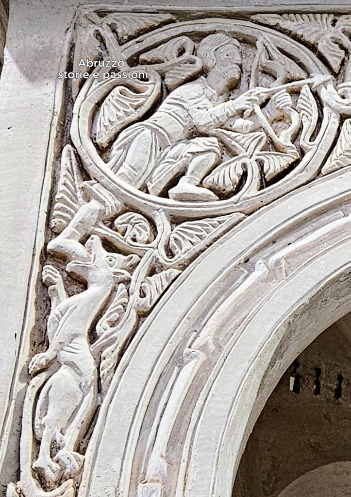 I due arcieri del portale di San Giovanni in Venere, immersi tra grovigli vegetali mentre scagliano le frecce, a mio avviso, richiamano altre decorazioni del Romanico abruzzese. Un esempio celebre si trova nel ciborio della navata centrale dell’abbazia di San Clemente al Vomano, scolpito dal magister Roberto con l’aiuto di Ruggero, suo padre, e arricchito dal repertorio del bestiario medievale tanto caro al magister Nicodemo. Per approfondire, si veda l’articolo: “Cugnoli, i libri di pietra di Nicodemo, Roberto e Ruggero”.