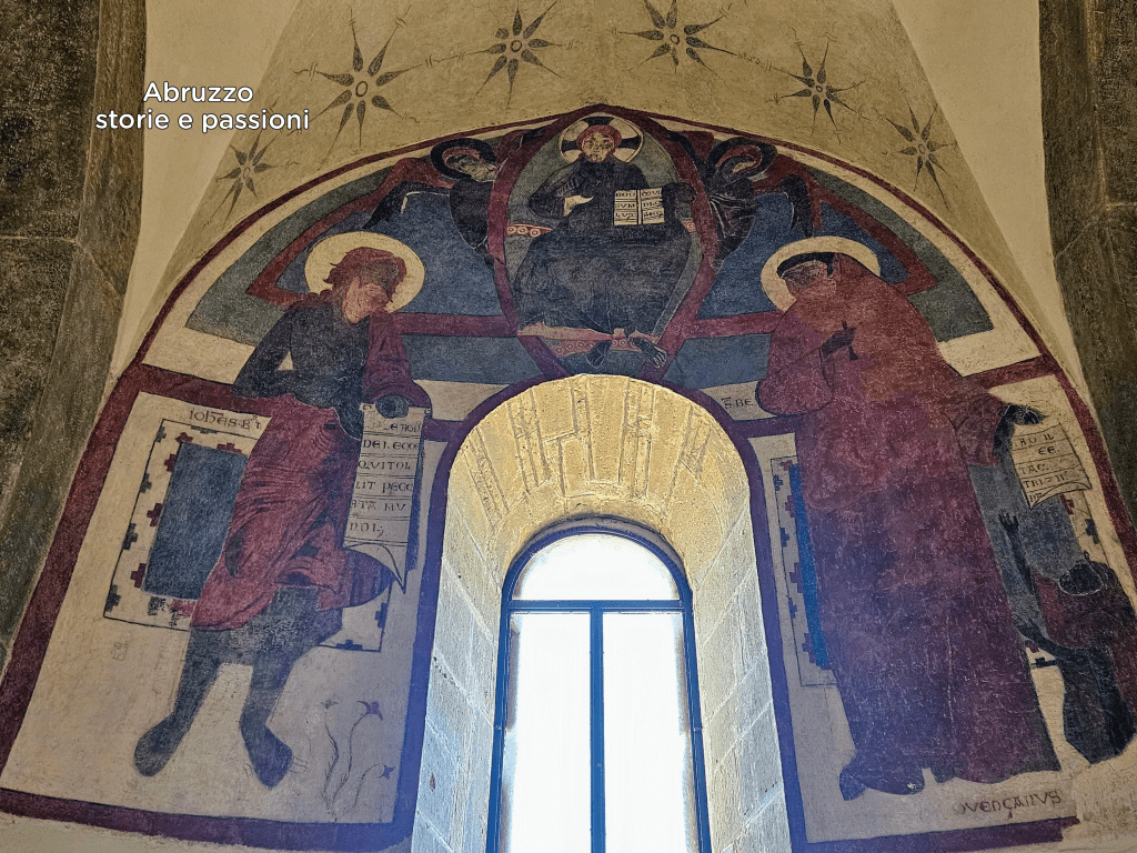 Abside centrale: Cristo in trono tra due angeli e tra San Giovanni Battista e San Benedetto, in basso a destra il monaco “Provenzanus”.