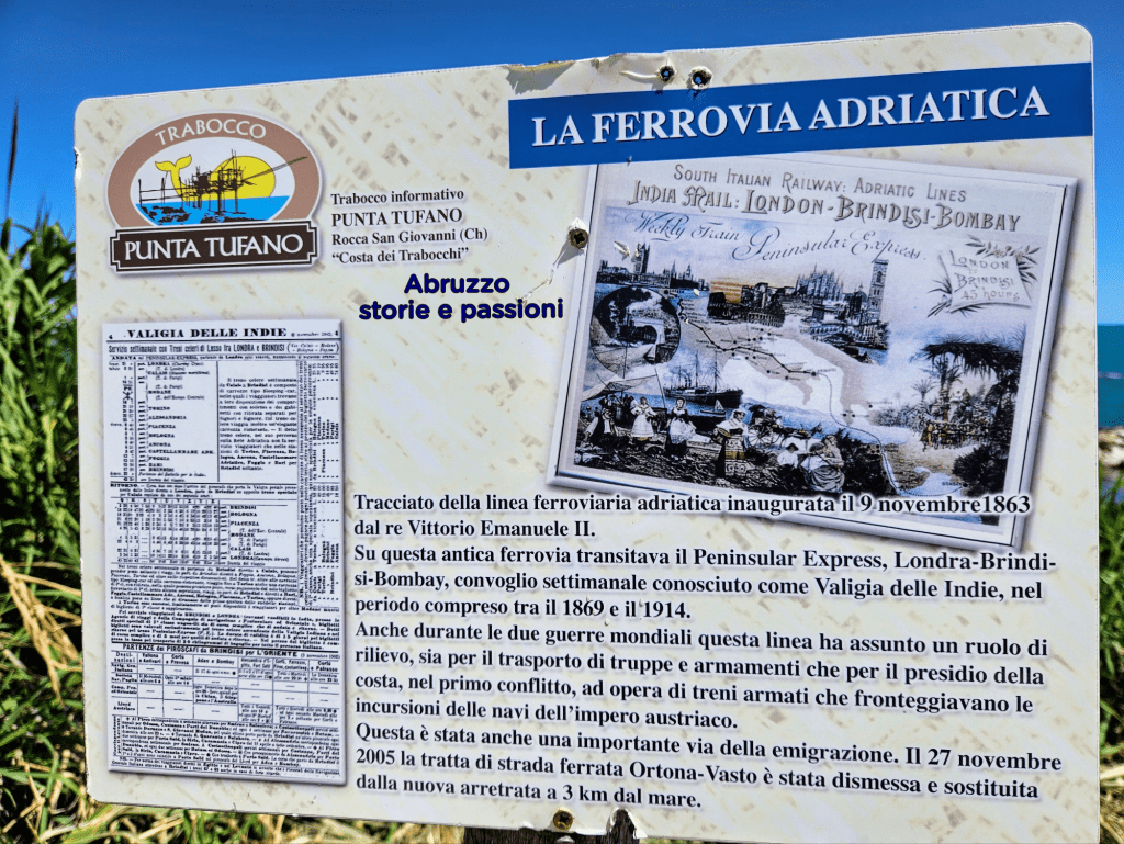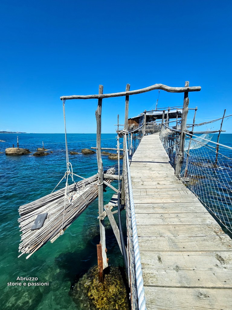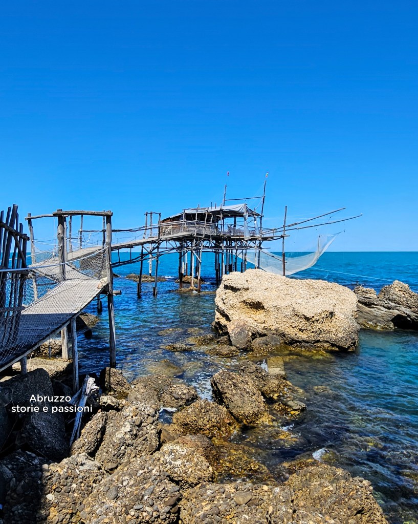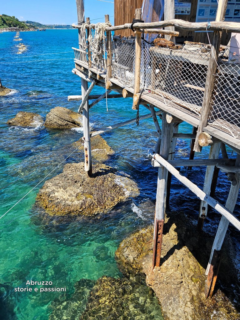 Oggi i trabocchi si presentano come veri e propri monumenti marini. Realizzati in legno resistente, pino d’Aleppo, quercia e robinia pseudoacacia, sono sapientemente ancorati al fondale roccioso, spesso integrando materiali ferrosi di recupero provenienti dalla vicina Ferrovia Adriatica, costruita tra il 1863 e il 1864 e dismessa a partire dal 1978 fino al 2005. Una testimonianza concreta di ingegno, tradizione e adattamento che continua a segnare il paesaggio e la cultura del mare abruzzese.