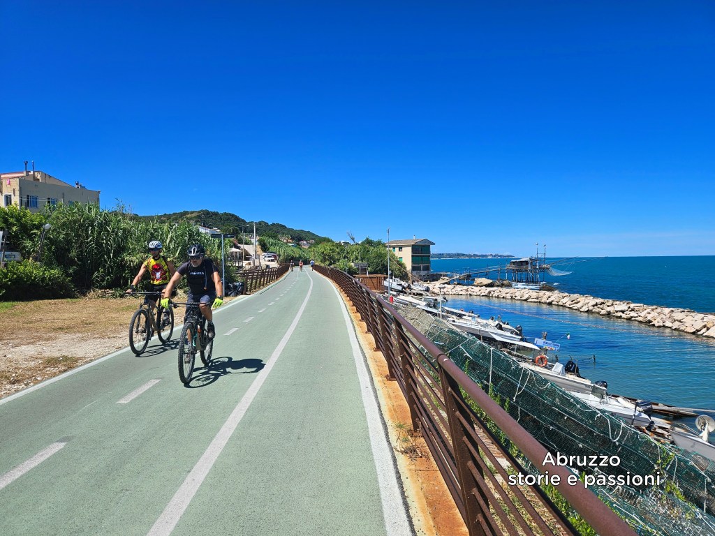 ▪︎ 📸 In copertina: il trabocco di Rocca San Giovanni ▪︎ 📸 Sotto: la ciclopedonale Via Verde attraversa Vallevò, frazione di Rocca San Giovanni nei pressi del porticciolo ‐ Foto Leo De Rocco per Abruzzo storie e passioni