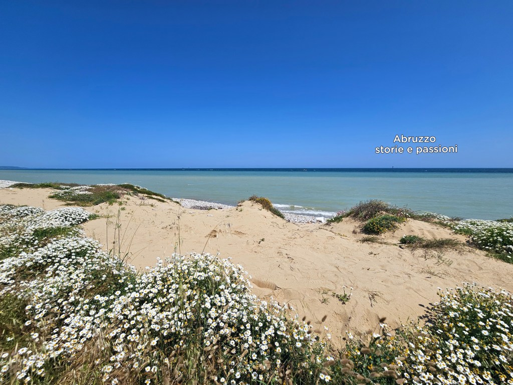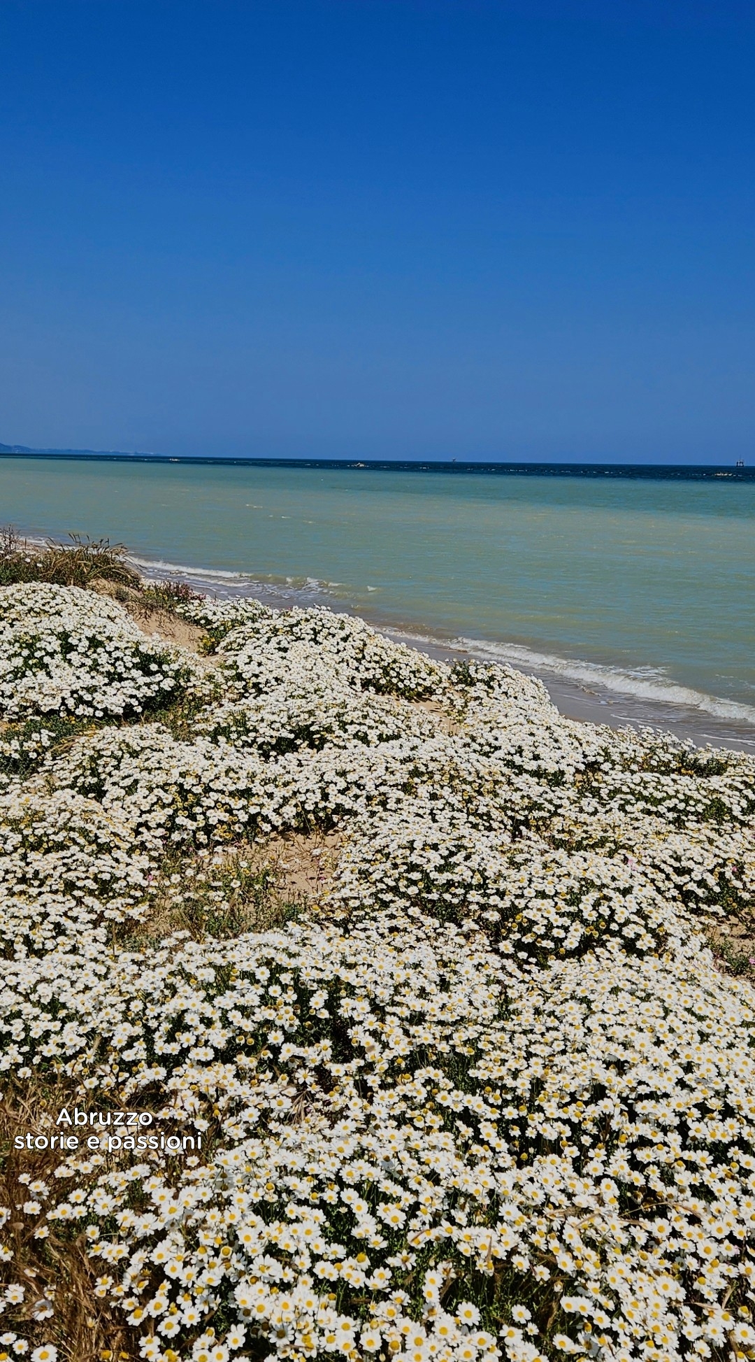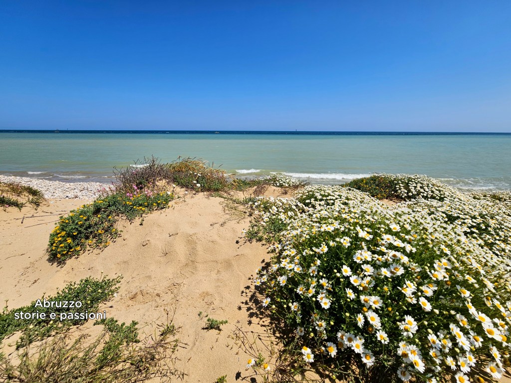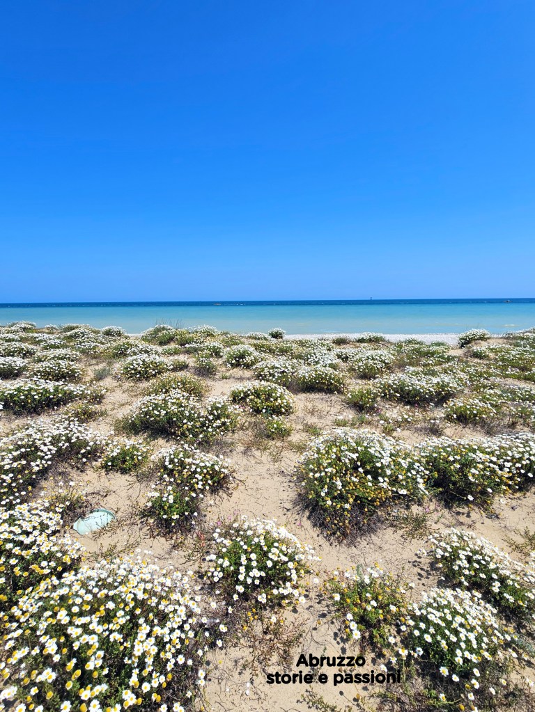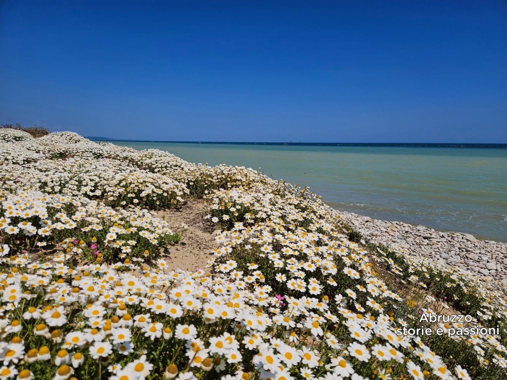 Dopo aver attraversato il ponte sul fiume Osento, la ciclopedonale della Via Verde raggiunge il litorale di Casalbordino. Se vi capita di viaggiare in questi luoghi nel periodo primaverile troverete un affascinante spettacolo della natura: il turchese del mare incontra il bianco brillante delle anthemis, le camomille di mare. Il tappeto fiorito lambisce la riva del mare e regala atmosfere fiabesche, oltre a un intenso profumo, miscelato con la fragranza frizzante della salsedine.