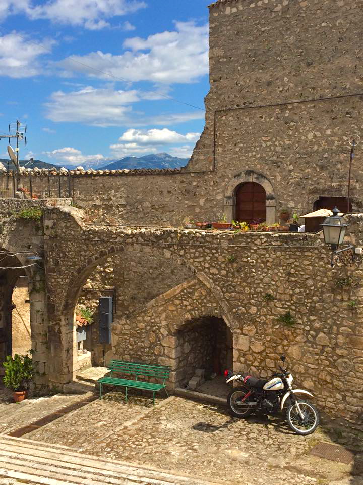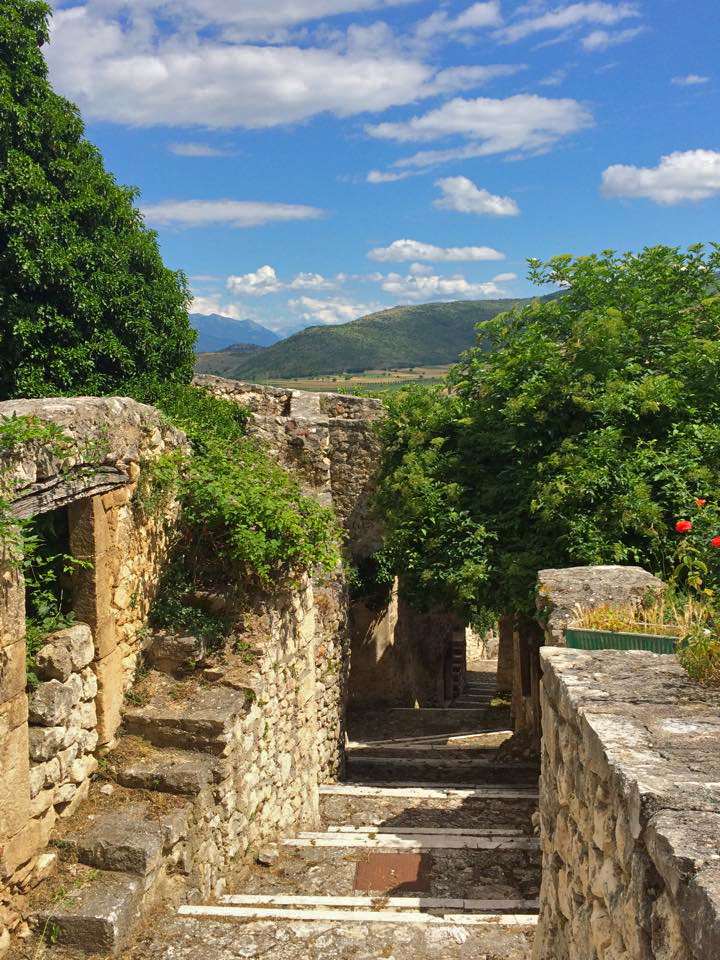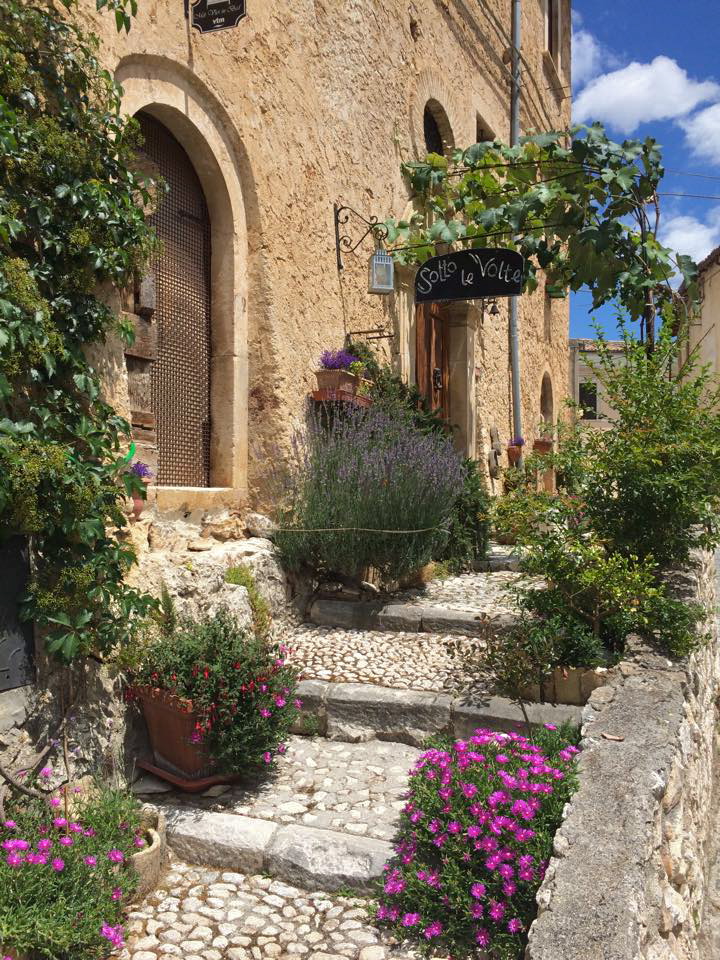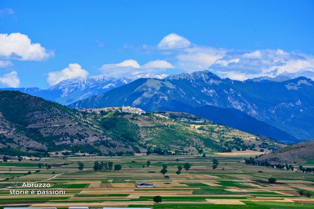 Il paese arranca sul fianco del colle brullo che guarda mezzogiorno. In alto il castello, giù la chiesa dell’XI secolo, da dove cade alla piana un volo plumbeo di colombi, e le case piccole e in pietra. I terreni scoscesi sono coltivati ad olivo e mandorlo, quelli in piano a frumento e vigna. È anche diffusa la coltivazione dello zafferano, che compri al tuo delicatessen shop. […] La piana è disseminata di graziose chiesuole, costruite tutte intorno all’XI secolo; sono abbandonate e i pastori vi ricoverano le greggi. I muri interni sono affrescati e nella penombra si ha l’impressione che le pecore escano dagli affreschi.