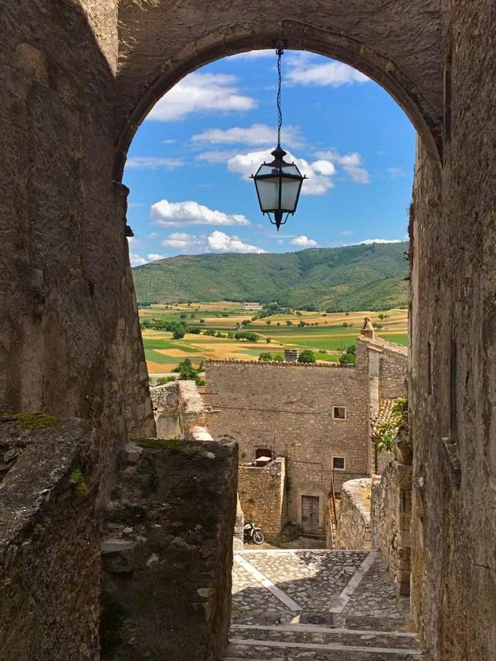 Perdersi tra i silenziosi vicoli di Navelli è come fare un viaggio nel tempo. Su un’altura che domina l’altopiano il paese sembra incantato in un lastricato di pietre antiche che prendono la forma di stradine, scalinate, case medievali, archi gotici, loggiati rinascimentali e torri.