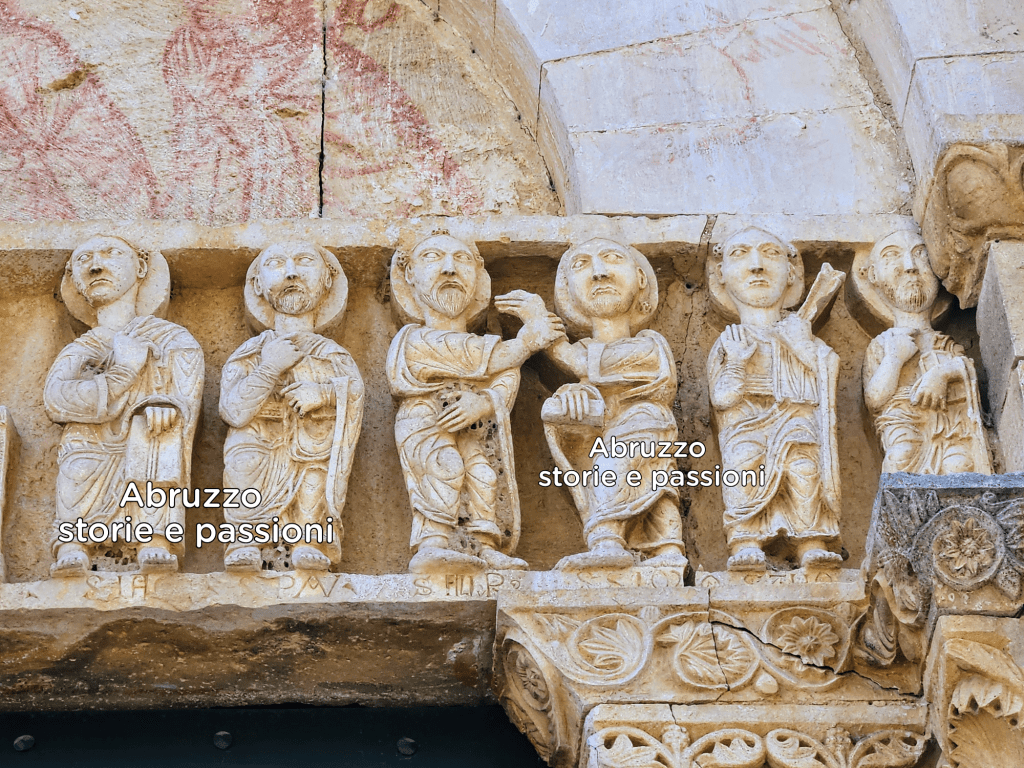 Insieme agli altri apostoli Tommaso lo troviamo scolpito sull’architrave del portale, con al centro il Cristo in trono. Ma in terra d’Abruzzo il legame con l’apostolo dubbioso è molto forte, tanto che le sue sacre ossa sono custodite a Ortona, nella Cattedrale di San Tommaso, riportate nel 1258 via mare, scortate da tre galee comandate dall’ammiraglio Leone il quale le trafugò sull’isola greca di Chios.
