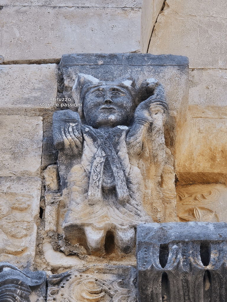 Ma è proprio lui! l’apostolo dubbioso Tommaso. Quando apparse Gesù risorto, Didimo, così veniva chiamato, non era presente. Gli altri discepoli incontrandolo gli dissero: “Abbiamo visto il Signore!”, ma Didimo, alias, Tommaso rispose: “se non metto la mia mano nel suo costato non crederò!” L’autore di questo portale e il suo committente, l’abate del vicino monastero oggi diruto o l’abate del cenobio di San Clemente a Casauria ci dicono invece: “non abbiate dubbi voi che entrate nella casa del Signore.”