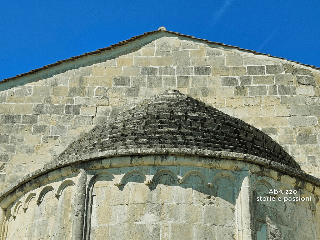 A cominciare proprio dal rilievo che raffigura l’arcivescovo di Canterbury, che probabilmente doveva affiancare l’architrave, progettato per un portale di dimensioni maggiori. O forse non era lì dove lo vediamo oggi, ma si trovava all’interno della chiesa abbaziale o del monastero soppresso nel 1656, i cui resti, ancora visibili al fianco della chiesa, sul lato che guarda le cime del Morrone, rendono affascinante l’area laterale del tempio e quella posteriore absidale, dalla cui monofora, noto mentre effettuo il sopralluogo per questo articolo, che qualcuno trafugò le statue dell’arcangelo Gabriele e di Maria, letteralmente scavando l’abside e lasciando due vuoti mattonati che sconvolgono la vista. Mi attivo subito per rintracciare il parroco.