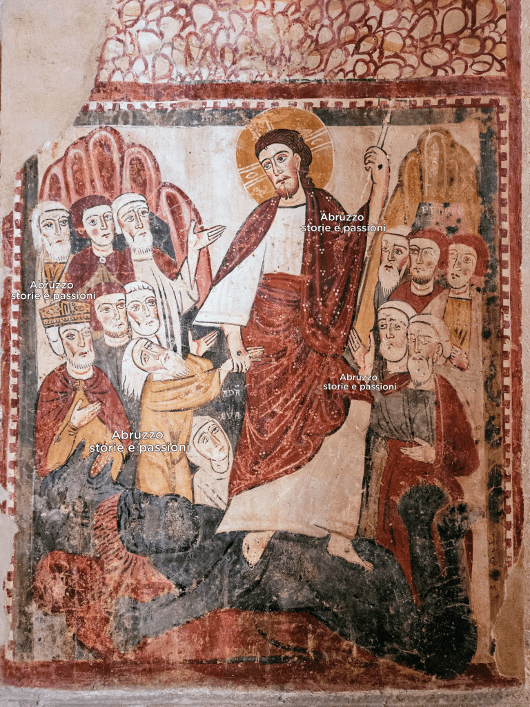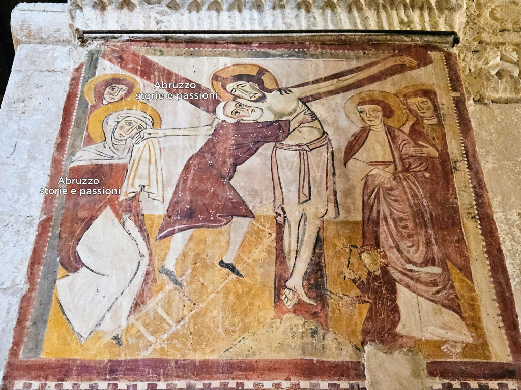 Altri interessanti affreschi si trovano sulla terza colonna di destra, raffigurano tre scene tratte dalle storie della Passione di Gesù, Deposizione, Sepoltura e Discesa al Limbo; anche in questo caso lo stile ricorda Bominaco. Gli affreschi del presbiterio e dell’abside incece sono andati persi.