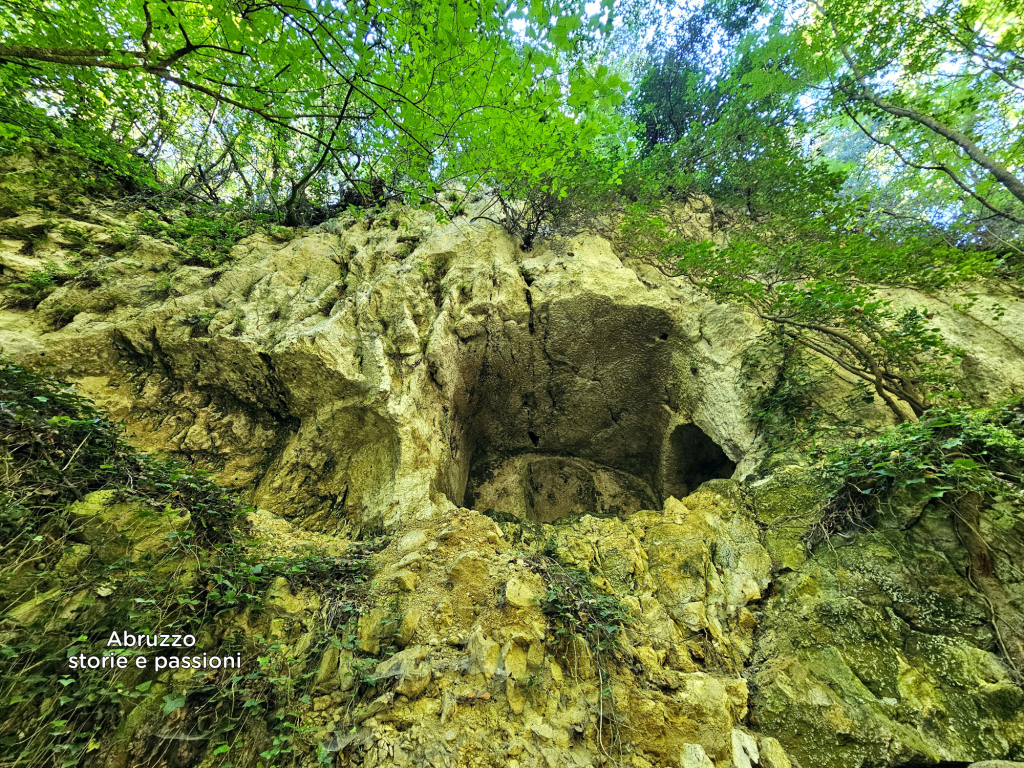 Proseguendo lungo la parete e attraversando una piccola cappella che racchiude una vasca con funzione di acquasantiera, tre gradini portano ad un podio su cui doveva poggiare una statua. Sulla parete retrostante del podio sono visibili i resti di affreschi ineleggibili a causa della umidità. Sulla storia di questo complesso non vi sono notizie certe. È ipotizzabile, vista la vicinanza con l’abbazia di San Liberatore a Maiella, che un gruppo di eremiti vivesse nella zona intorno al VIII-IX secolo e utilizzasse il complesso rupestre come luogo di culto, seppellendovi i loro defunti, finché il gruppo non divenne più grande e organizzato e il complesso perse la sua funzione pur restando un luogo sacro probabilmente dedicato a San Giovanni Battista. (1)