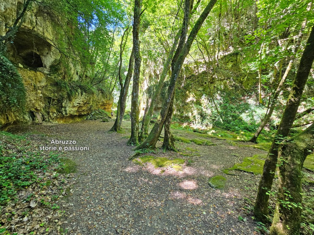 Dopo aver attraversato un ponticello e percorso in salita un tratto del sentiero, talvolta reso pericoloso dai capricci del fiume e per questo chiuso ai turisti, si raggiunge una parete di roccia utilizzata in passato anche dai monaci per le sepolture. Sulla parete lunga circa 20 metri sono collocate tre tombe scavate nella roccia, una piccola nicchia e una cappellina. Le tombe sono del tipo ad “arcosolio“, utilizzate nelle catacombe cristiane soprattutto dai ceti nobili. Questo genere di sepoltura può ritenersi non successiva al X secolo.