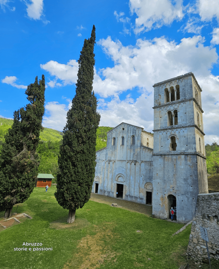 Lasciata la Tiburtina Valeria, più o meno all’altezza di Manoppello, il paese del Volto Santo e dell’abbazia cistercense di Santa Maria in Arabona, dopo aver percorso le ultime curve di una stradina che attraversa la serra pedemontana sul versante settentrionale della Maiella, le pietre bianche della facciata, del campanile e delle antiche mura di cinta dell’abbazia di San Liberatore a Maiella appaiono all’improvviso, accarezzate dai raggi di un tiepido sole primaverile.