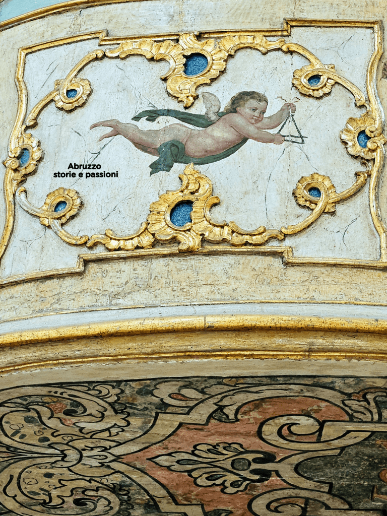 Decorazioni area presbiteriale, angeli recano simboli francescani